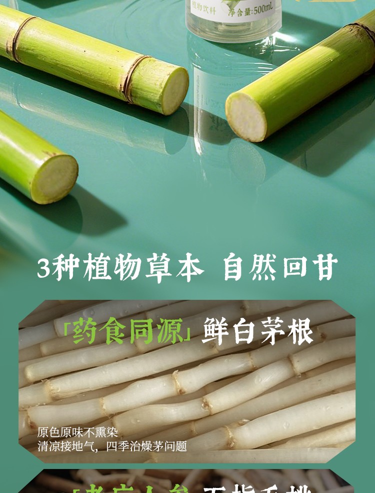 (世星阳光)可可满分竹蔗茅根水500ml*5 饮品 低糖中式茶 0脂肪无负担 植物果汁饮料