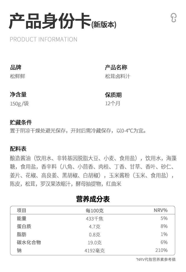 商品名称:(超运·禾贸)松鲜鲜松鲜鲜松茸老卤汁150g*2【CJSXX265】 松茸卤汁卤料汁水 调味料家庭卤味料酱料汁