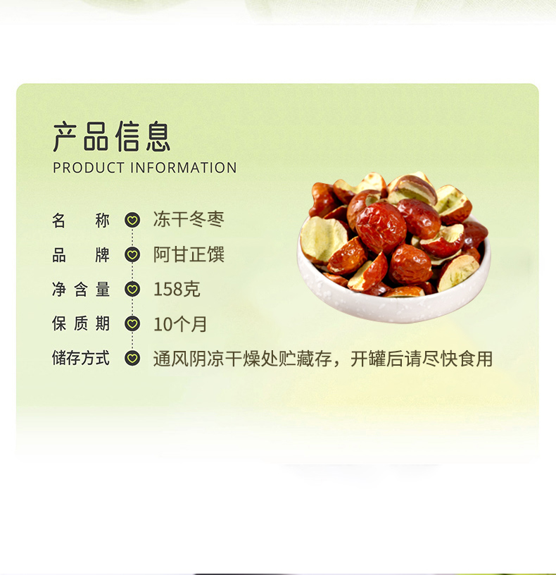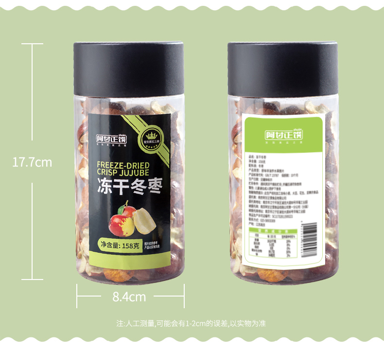 商品名称:(巨邦佑)R+阿甘正馔冻干冬枣158g*2罐 休闲零食蜜饯果干办公室零食小吃