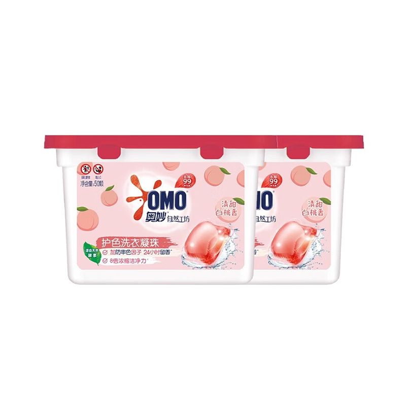 商品名称:正大 (CP)奥妙(OMO)自然工坊白桃护色洗衣凝珠 50颗*2盒洗护用品衣物护理【全国包邮】