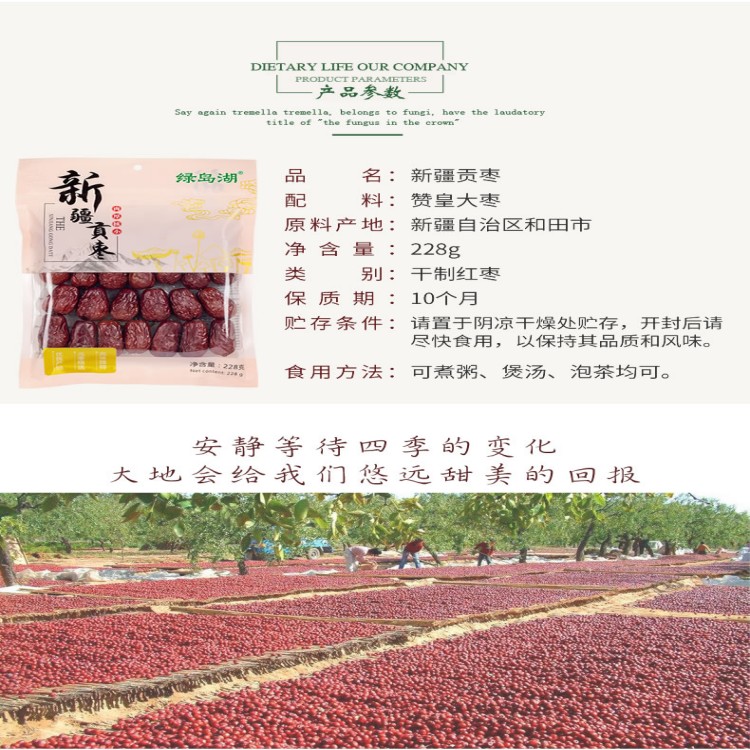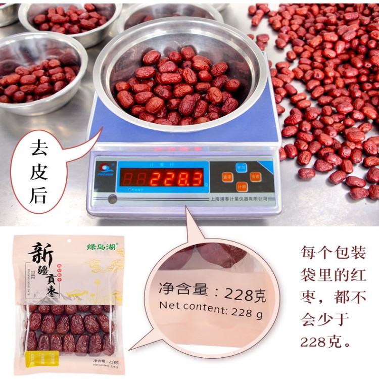 商品名称:(巨邦佑)BJ+绿岛湖新疆贡枣228g*3 皮薄肉嫩颗粒饱满