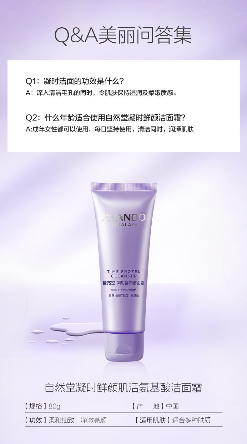商品名称:(世星阳光) 自然堂凝时鲜颜肌活氨基酸洁面霜80g 洗卸合一洗面奶 温和清洁清爽补水保湿