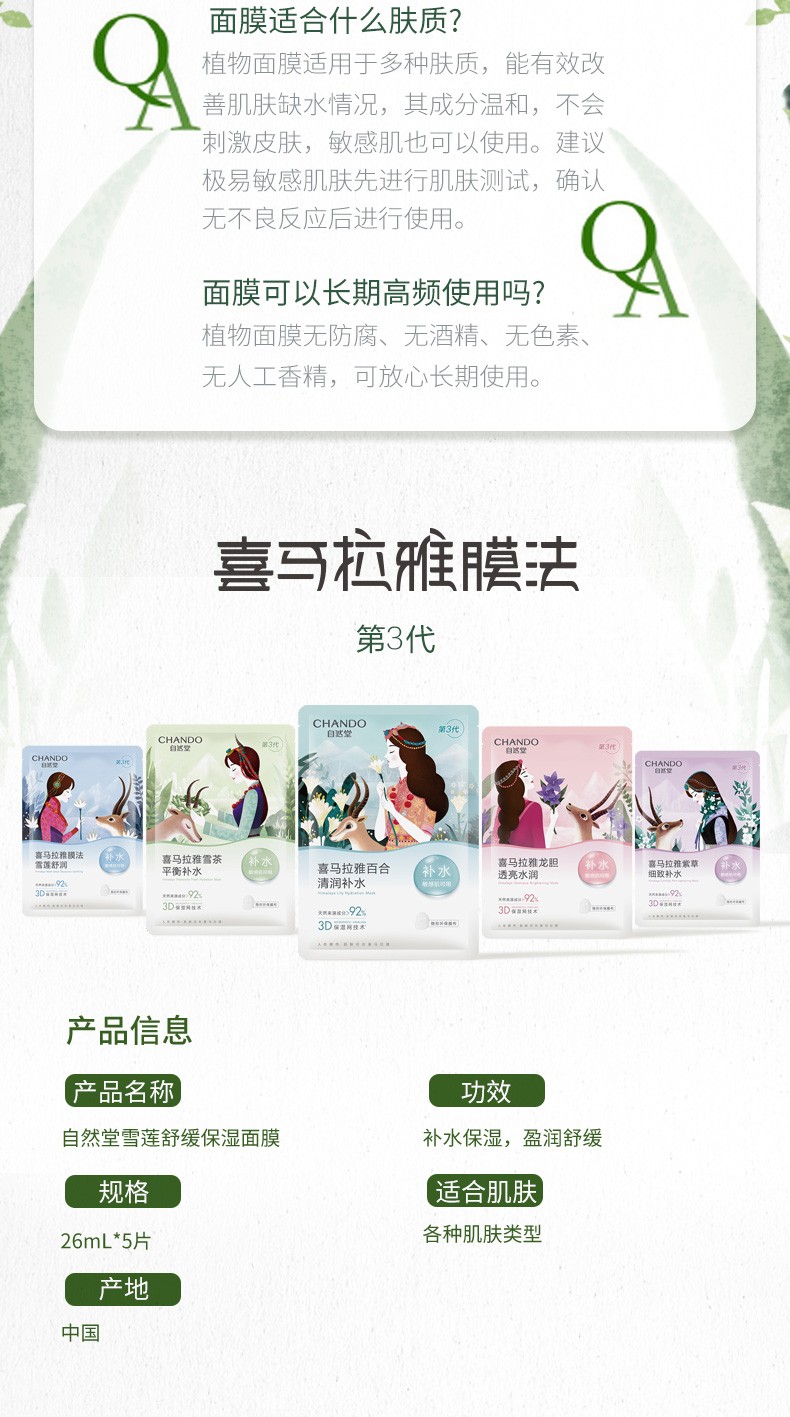 商品名称:(世星阳光)自然堂雪莲舒缓保湿面膜26ml*5 补水保湿温和滋润 敏肌可用