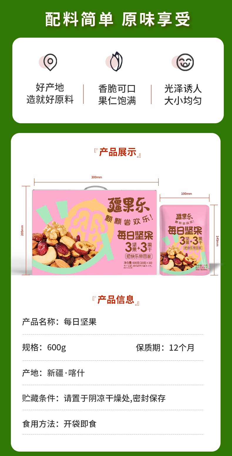商品名称:(世星阳光)疆果乐每日坚果600g(20g*30包) 零食干果仁炒货礼盒 独立包装 精心烘制 坚果香醇 酥脆爽口
