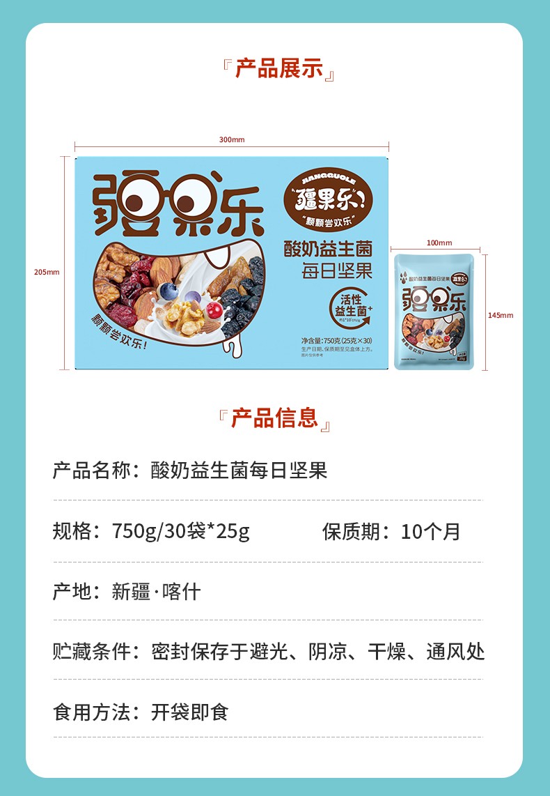 商品名称:(世星阳光)疆果乐益生菌每日坚果750g(25g*30包) 零食干果仁炒货礼盒 独立包装 精心烘制 坚果香醇 酥脆爽口