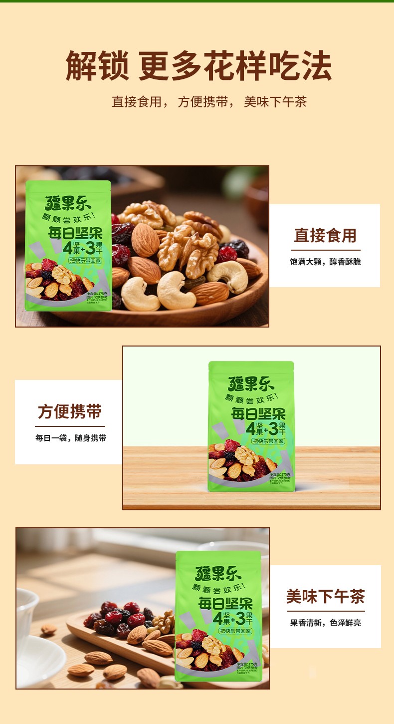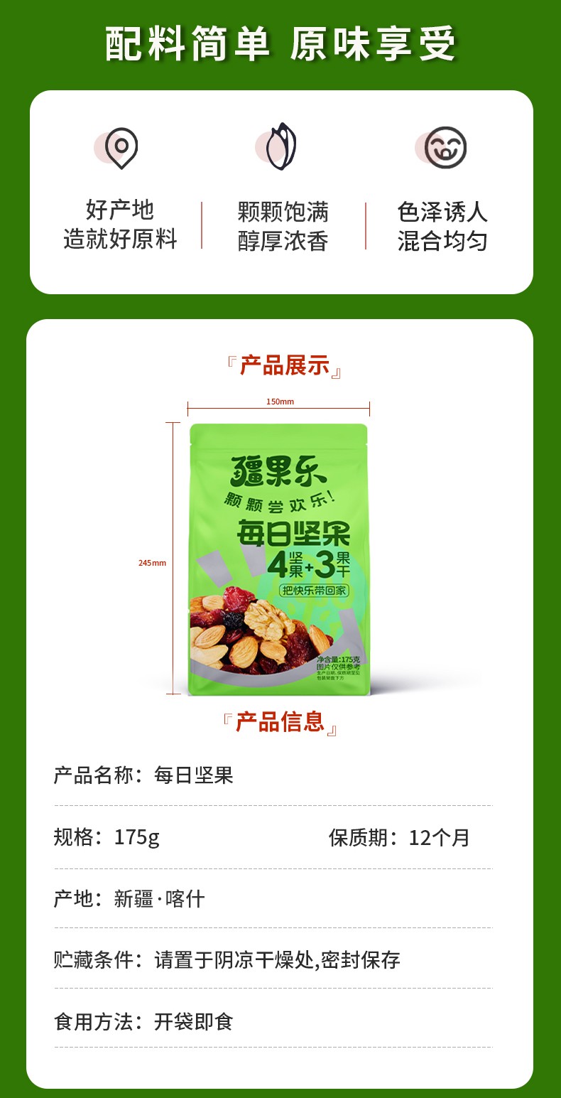 商品名称:(世星阳光)疆果乐每日坚果175g 零食干果仁炒货礼盒 精心烘制 坚果香醇 酥脆爽口