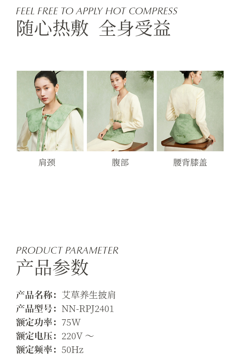 商品名称:(汇景缘)左点养生娘娘艾草养生披肩(故宫款)电加热发热披肩艾灸艾草热敷包热敷袋理疗袋