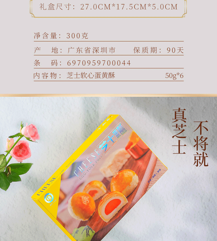 商品名称:(世星阳光) 十五月芝士软心蛋黄酥礼盒*2 单盒300g 千层酥皮 醇厚芝士 鲜咸蛋黄沙