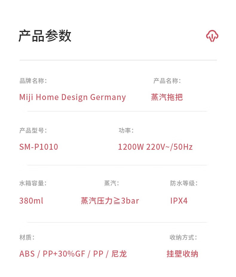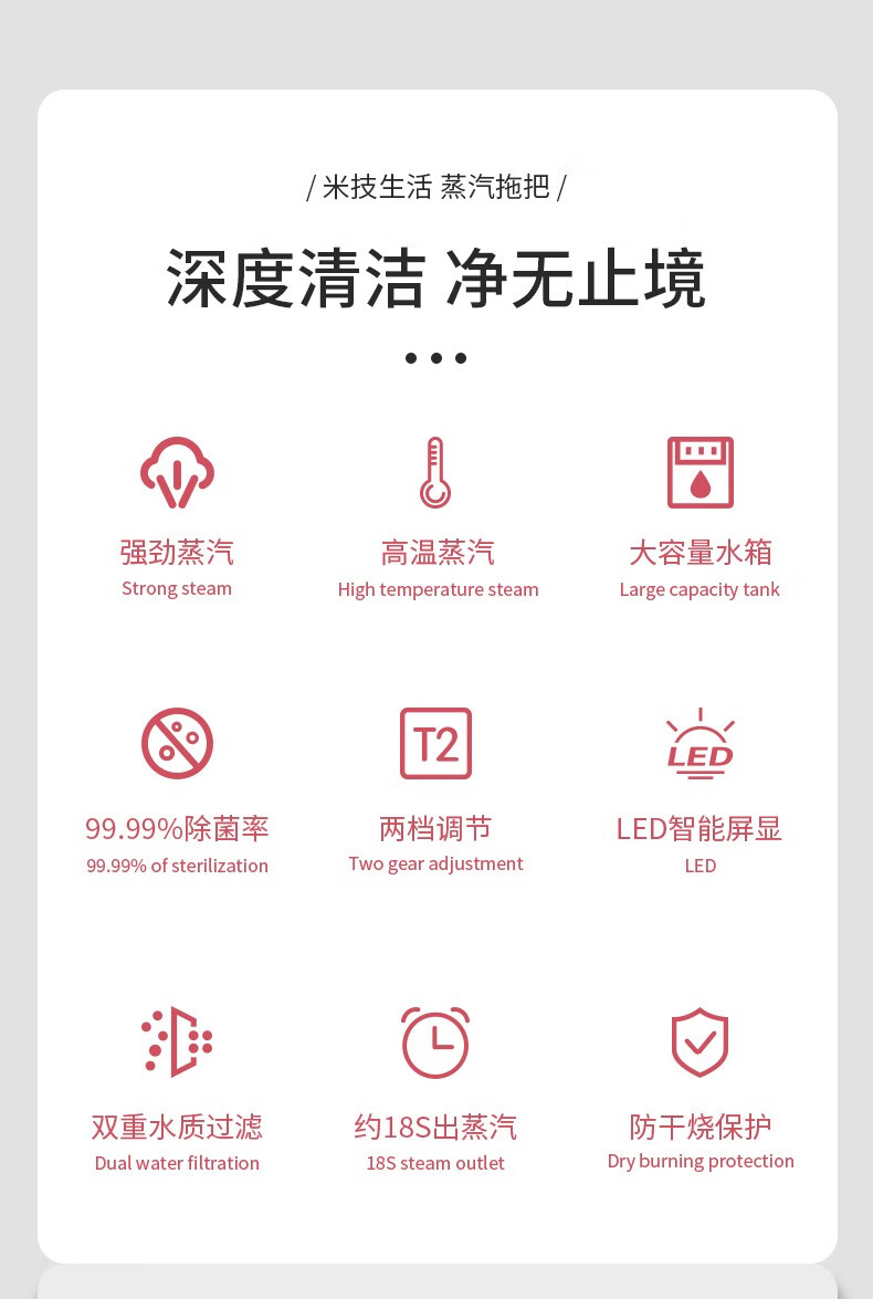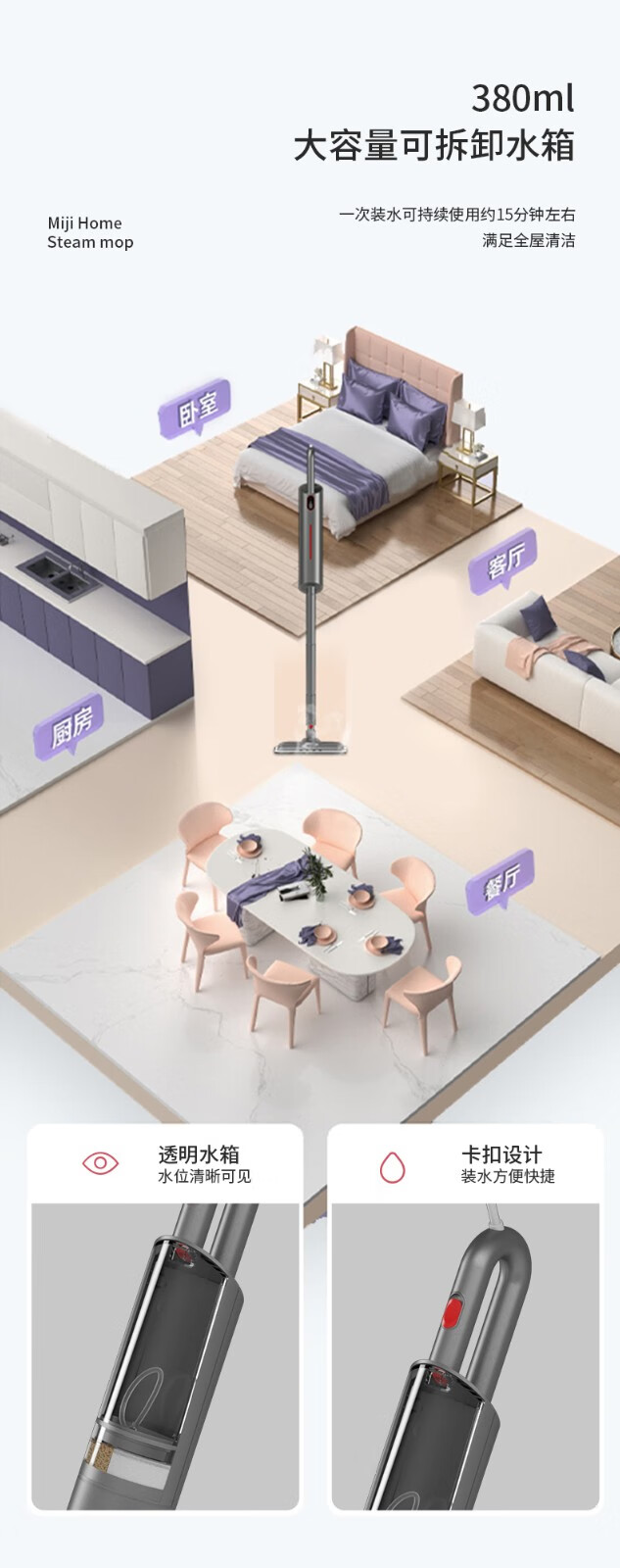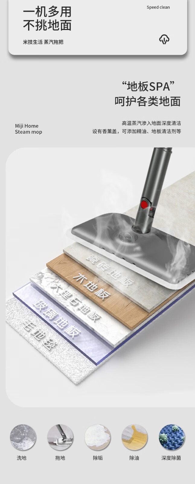商品名称:(巨邦佑)BJ+米技 蒸汽拖把SM-P1010 拖地洗地二合一强劲高温蒸汽两档调节LED智能屏显