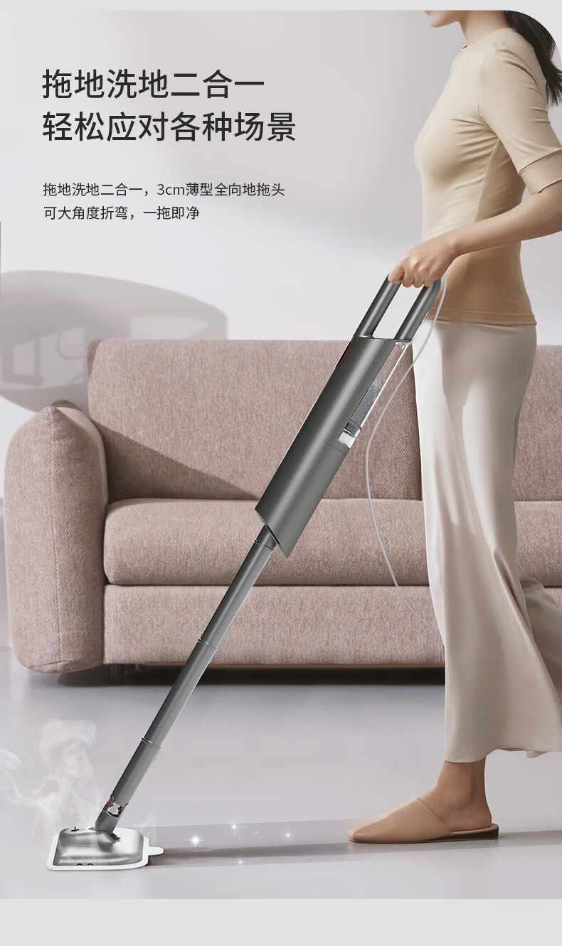 (巨邦佑)BJ+米技 蒸汽拖把SM-P1010 拖地洗地二合一强劲高温蒸汽两档调节LED智能屏显