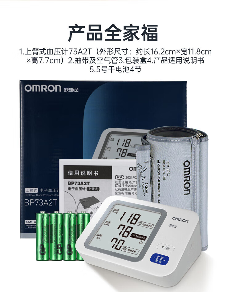 商品名称:(超运·禾贸)欧姆龙 电子血压计BP73A2T 血压仪智能加压血压测量仪