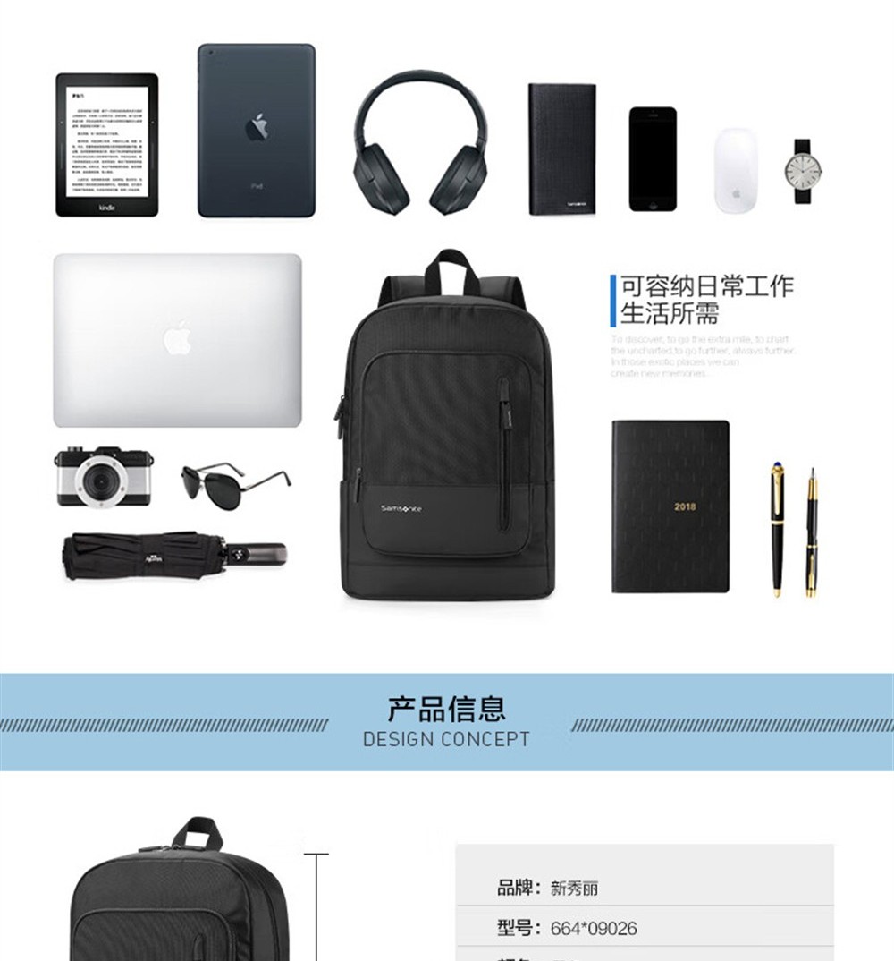 商品名称:(世星阳光)新秀丽双肩包 黑色 15.6英寸 664*09026 双肩电脑包笔记本包时尚休闲背包男女款商务背包