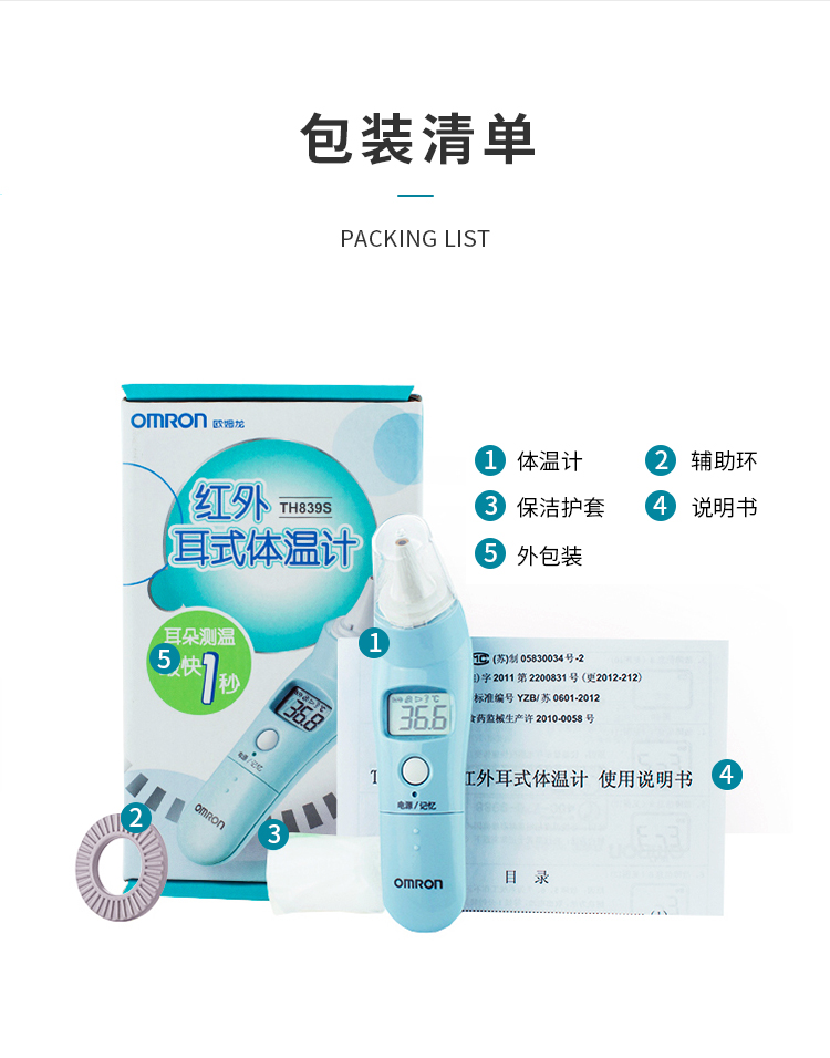 商品名称:(超运·禾贸)欧姆龙 红外线耳式体温计 TH839S 耳式电子体温计家用耳温计婴儿童准确耳温