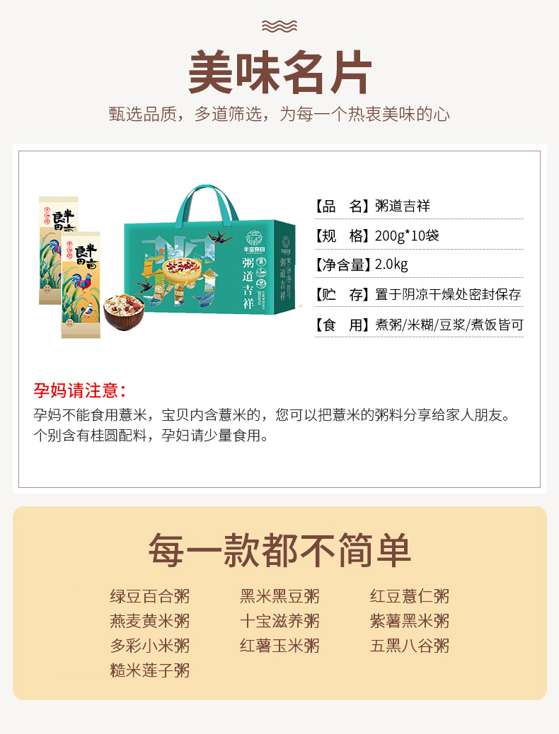 商品名称:(巨邦佑)R+ 半亩川半亩良田 粥道吉祥2000g 杂粮礼盒组合装混合杂粮 节日礼盒