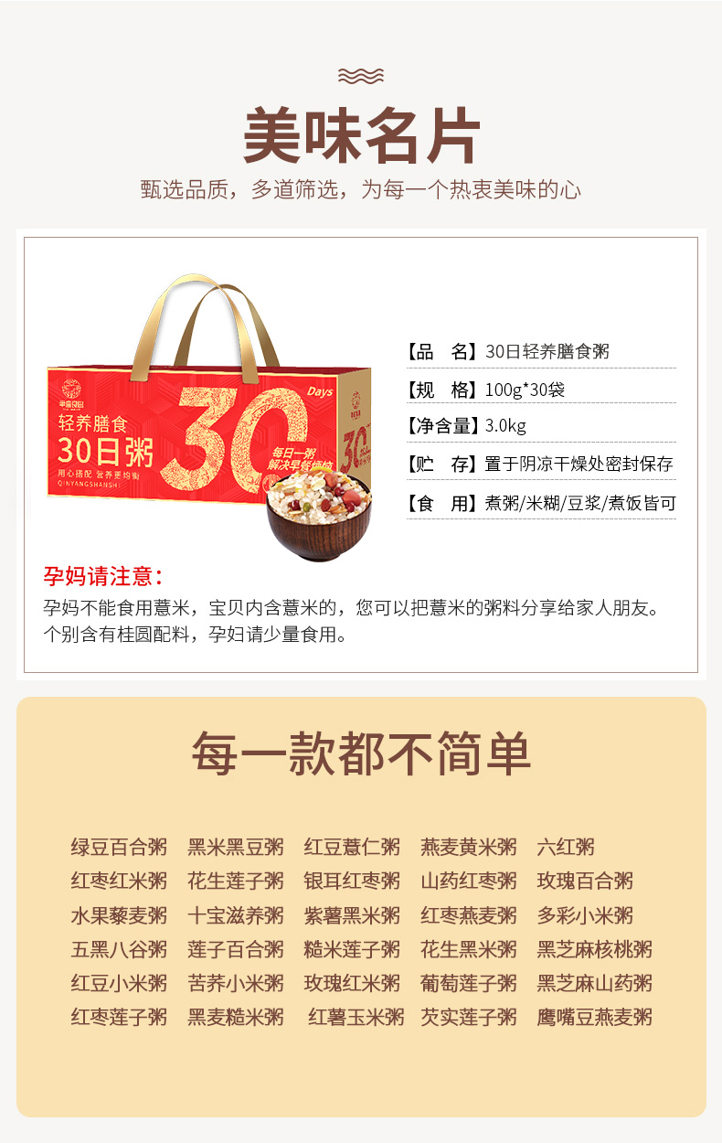 商品名称:(巨邦佑)R+ 半亩川半亩良田30日轻养膳食粥3000g 杂粮礼盒组合装 混合杂粮 送礼