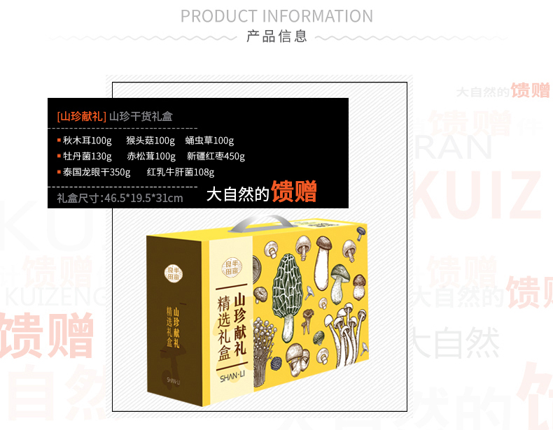商品名称:(巨邦佑)R+半亩川半亩良田 山珍献礼1438g 年货礼盒 南北干货大礼包送礼