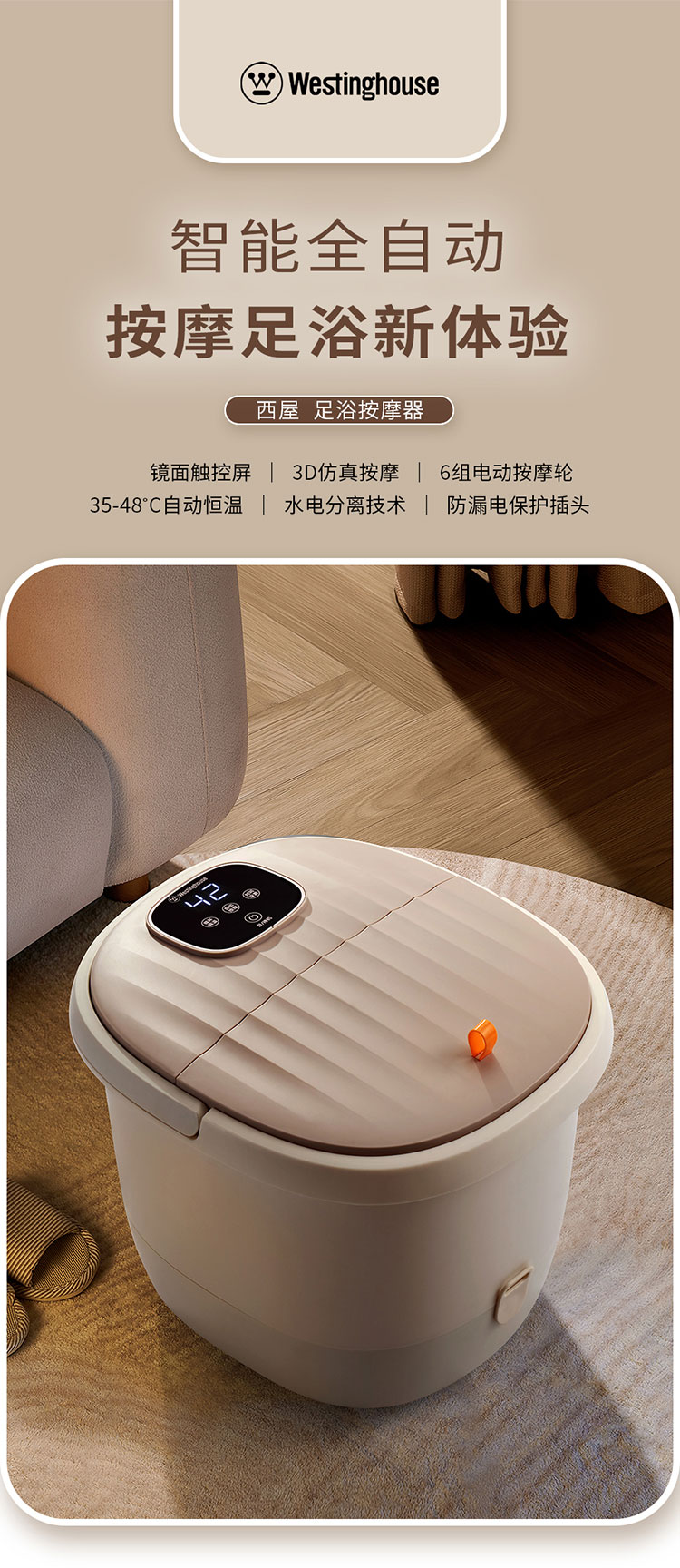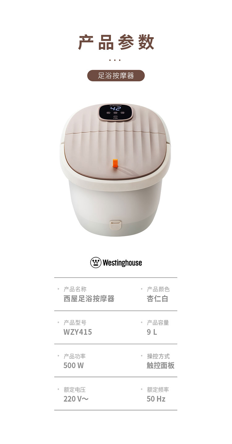商品名称:(世星阳光)+WY西屋 足浴按摩器 9L WZY415 镜面触控屏 3D仿真按摩 6组电动按摩轮