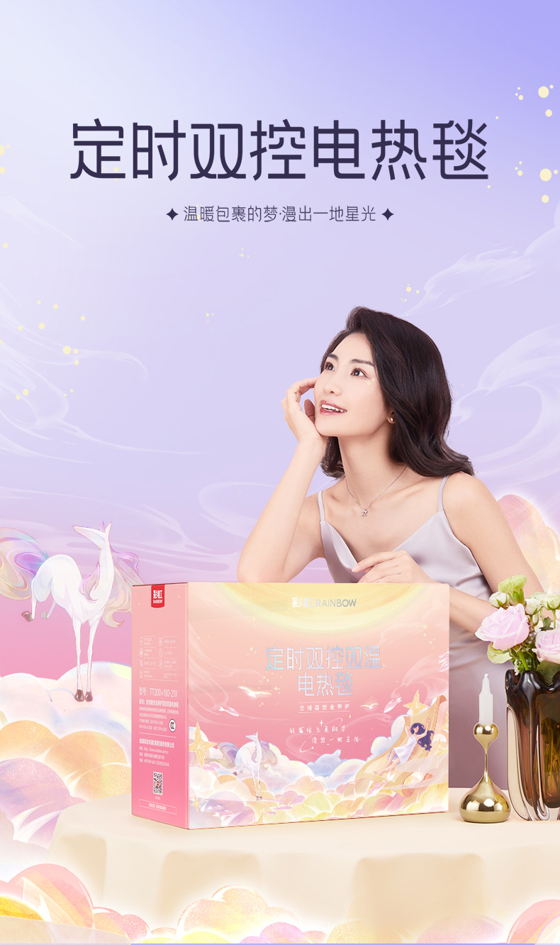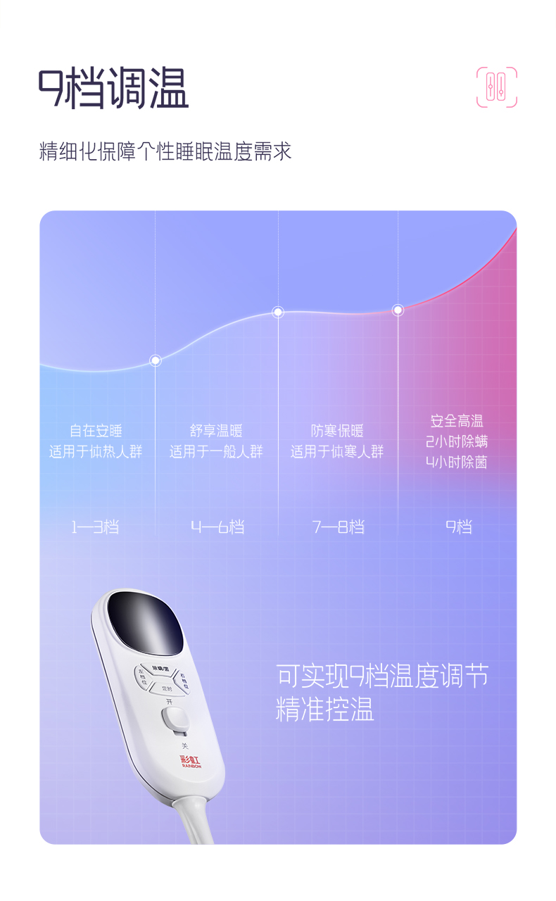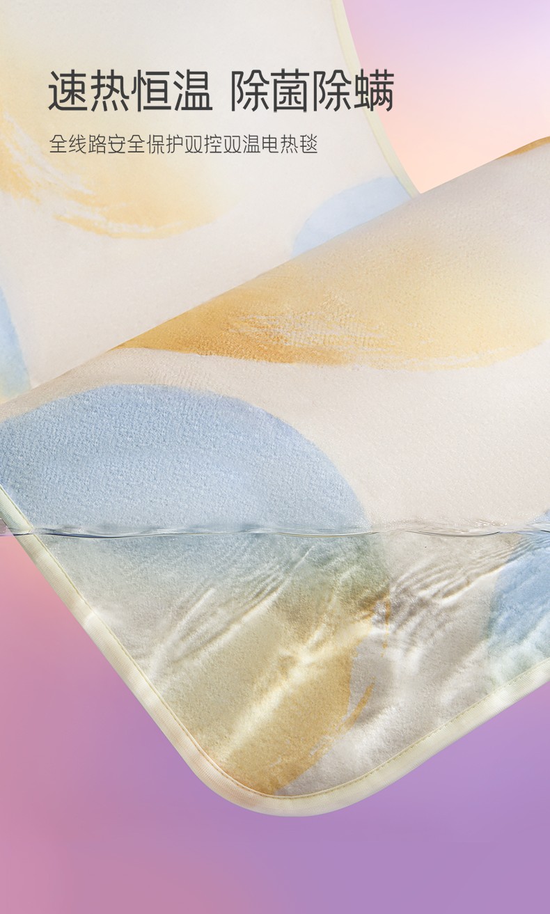 (世星阳光)+彩虹 T2018 彩虹全线路安全保护双控双温电热毯(特大宽幅化纤面料)1.8mx2.0m高温断电保护.舒适亲肤