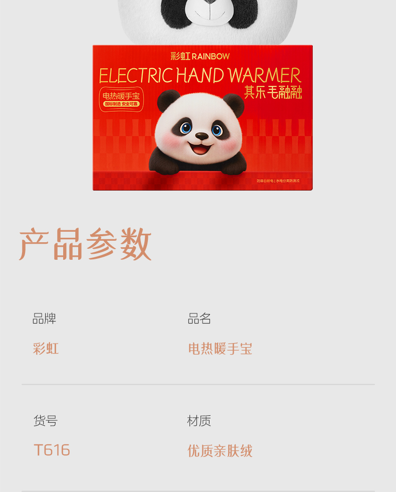 商品名称:(世星阳光)+彩虹 电热暖手宝 T616 趣味可拆洗暖手套 小巧服帖 亲肤透气