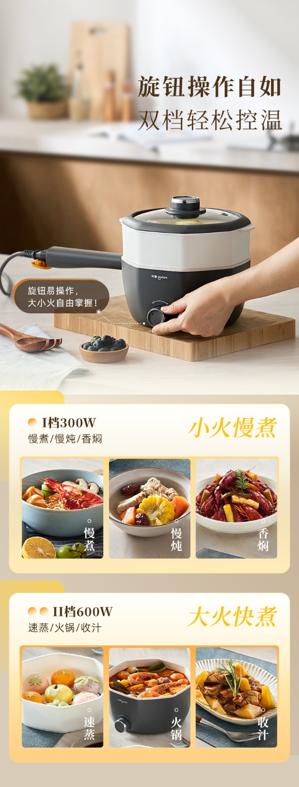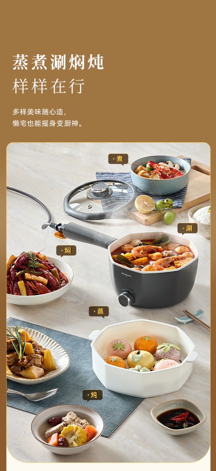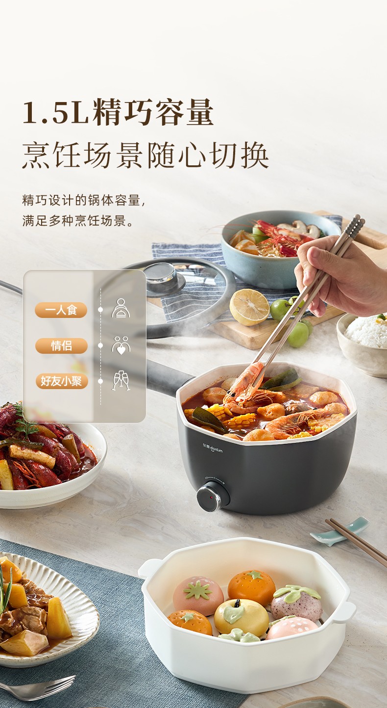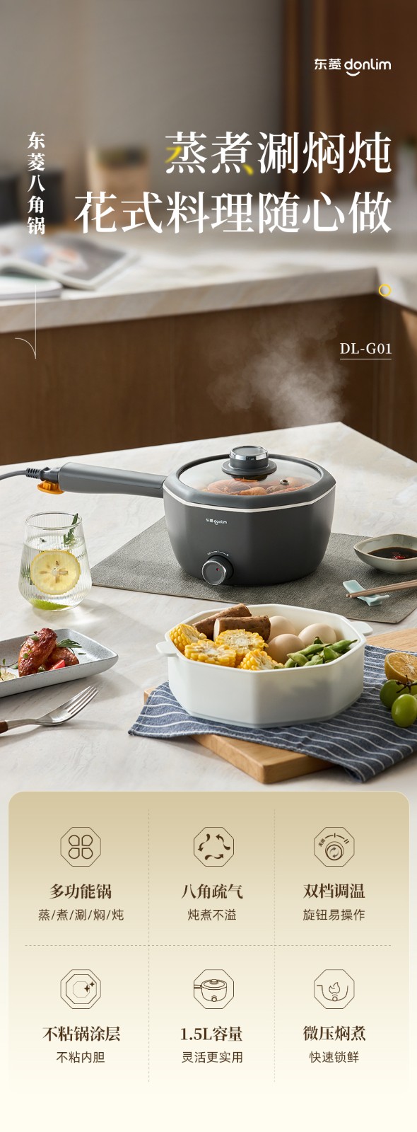 (世星阳光)+东菱(Donlim)八角多功能电煮锅DL-G01 电火锅 电蒸锅 学生寝室一体泡面小火锅