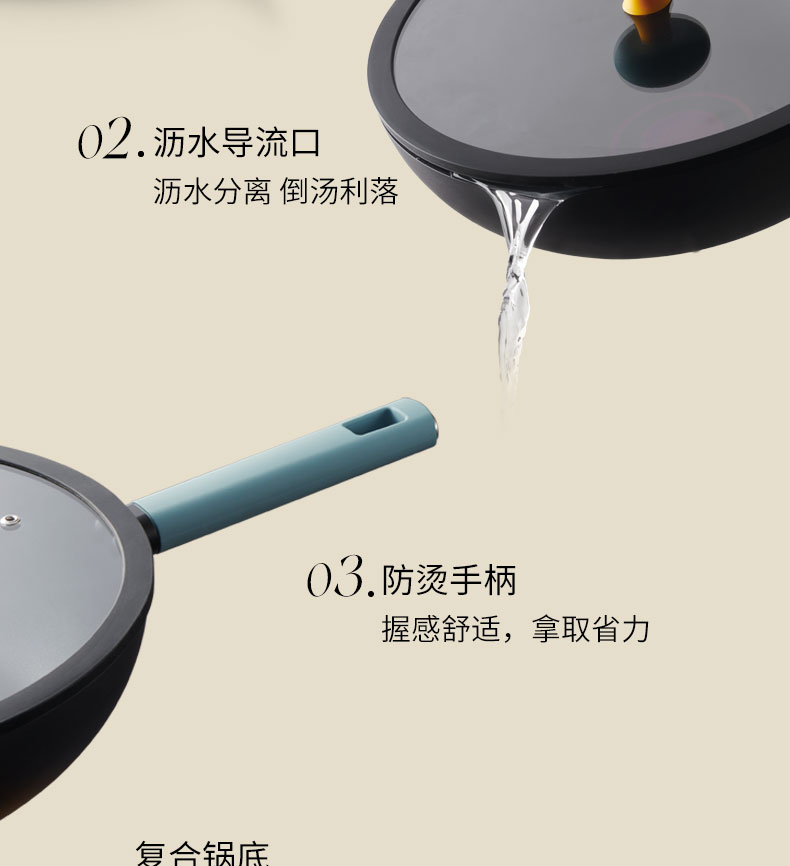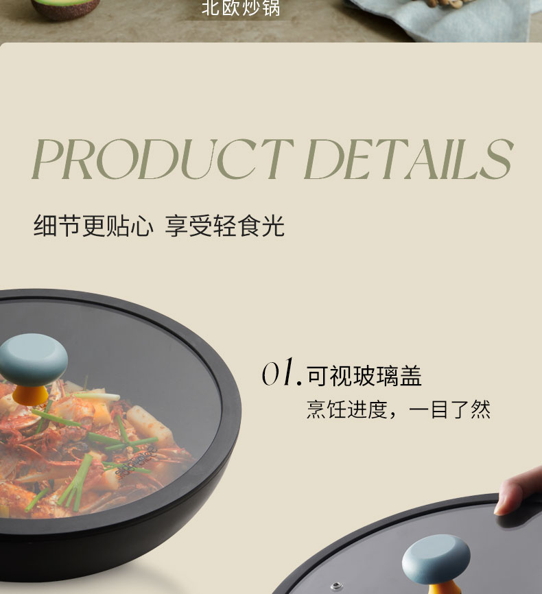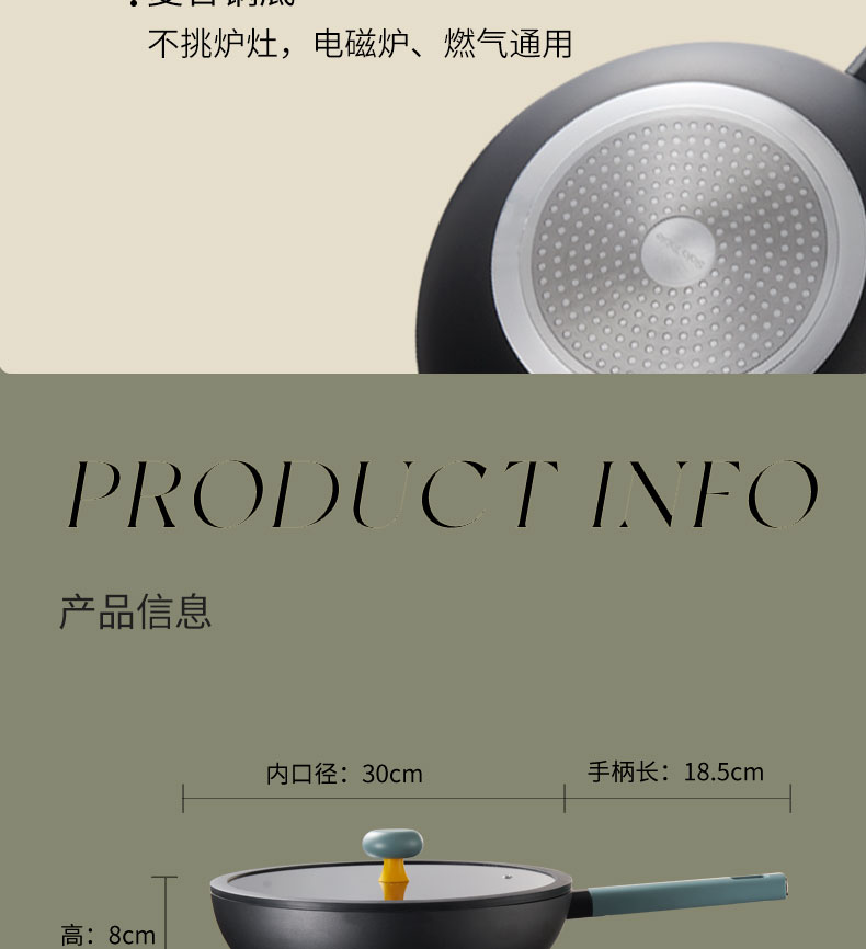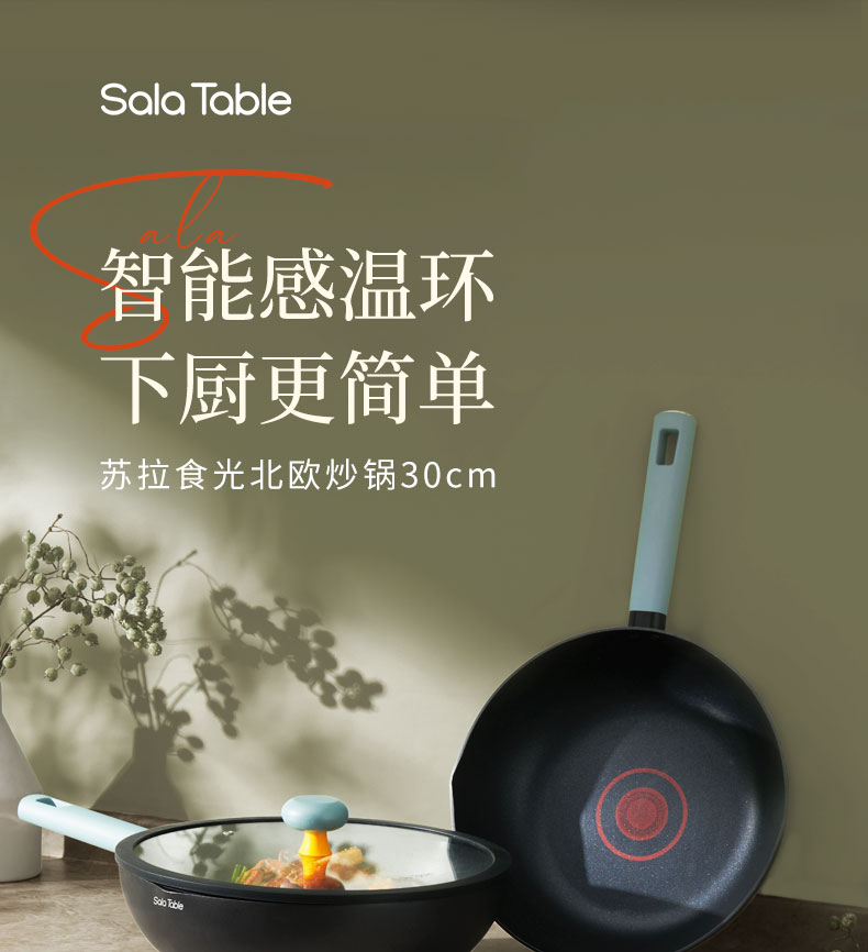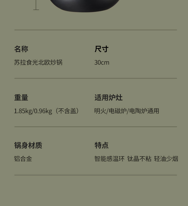 商品名称:(世星阳光)+WY苏拉食光 北欧钛晶炒锅 30cm SL-CL30G1 智能感温环 下厨更简单