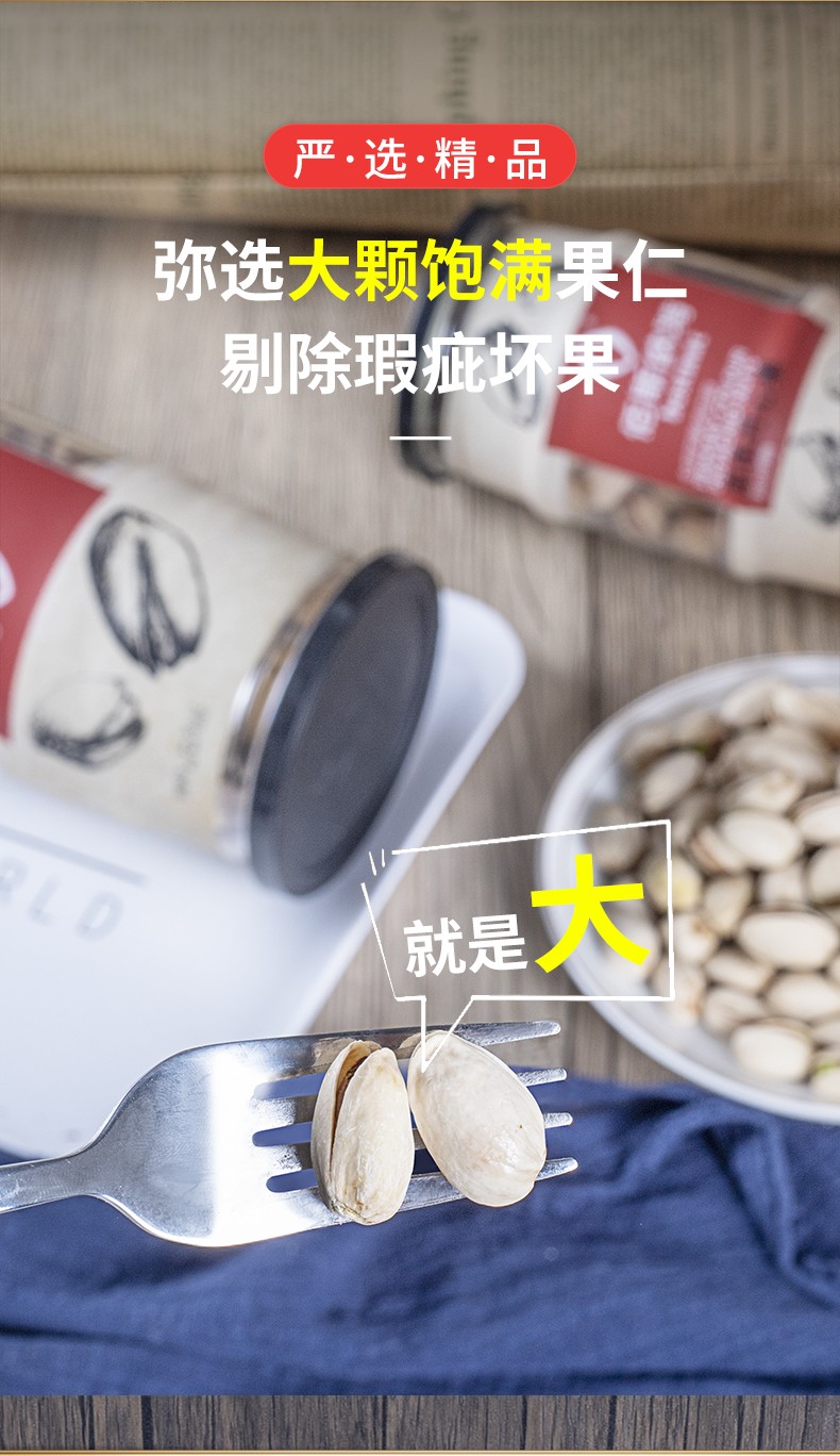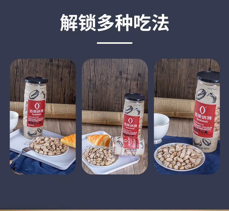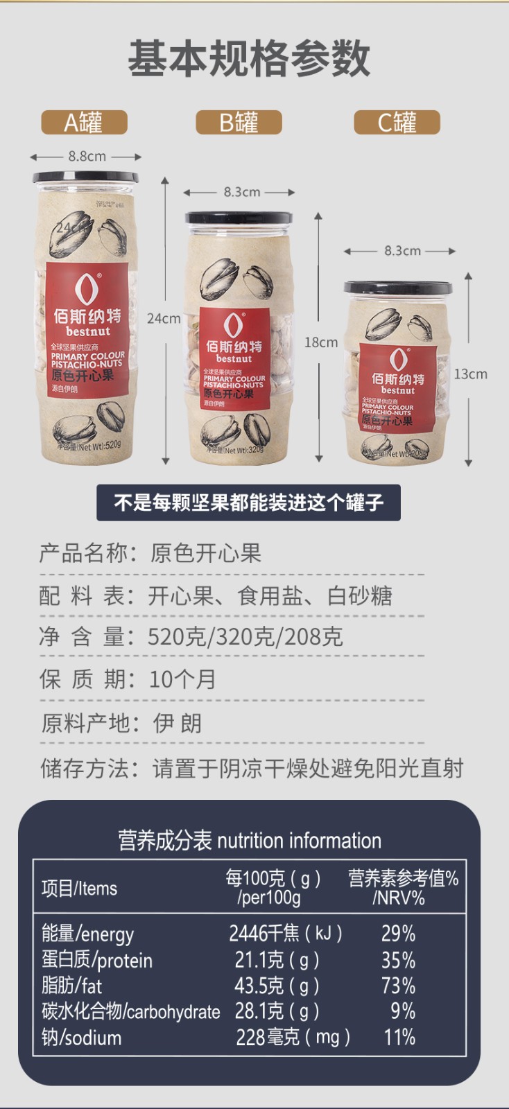 商品名称:(世星阳光)+佰斯特纳 原色开心果520g 进口无漂白大颗粒罐装坚果炒货休闲零食
