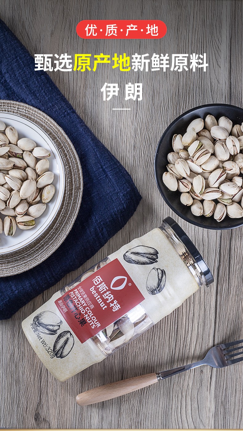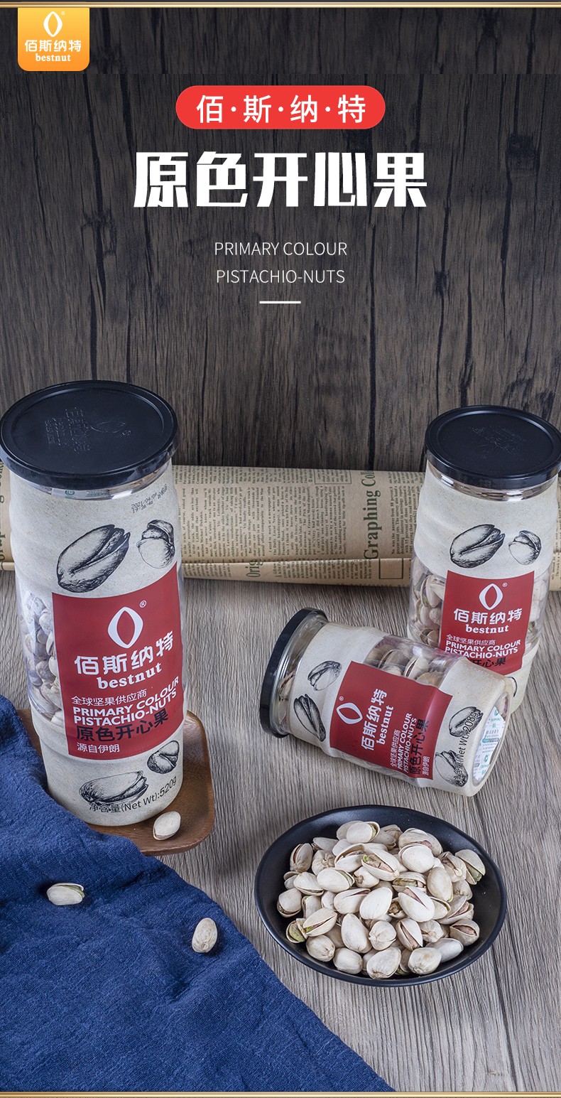 (世星阳光)+佰斯特纳 原色开心果520g 进口无漂白大颗粒罐装坚果炒货休闲零食