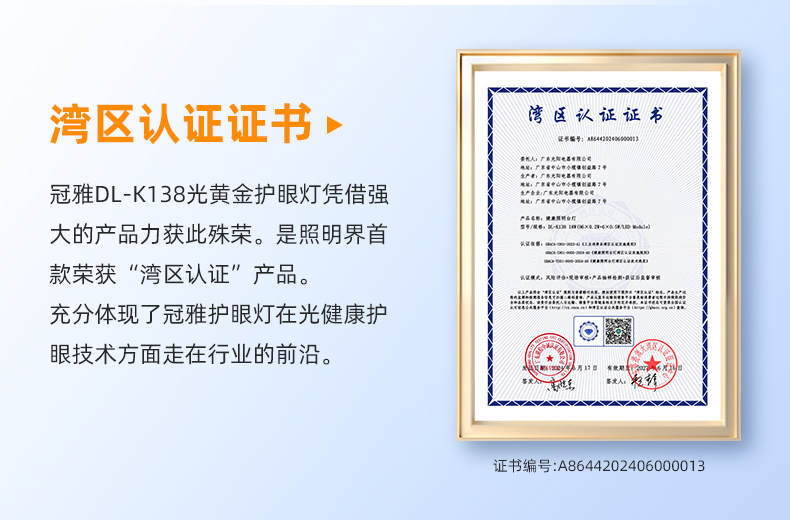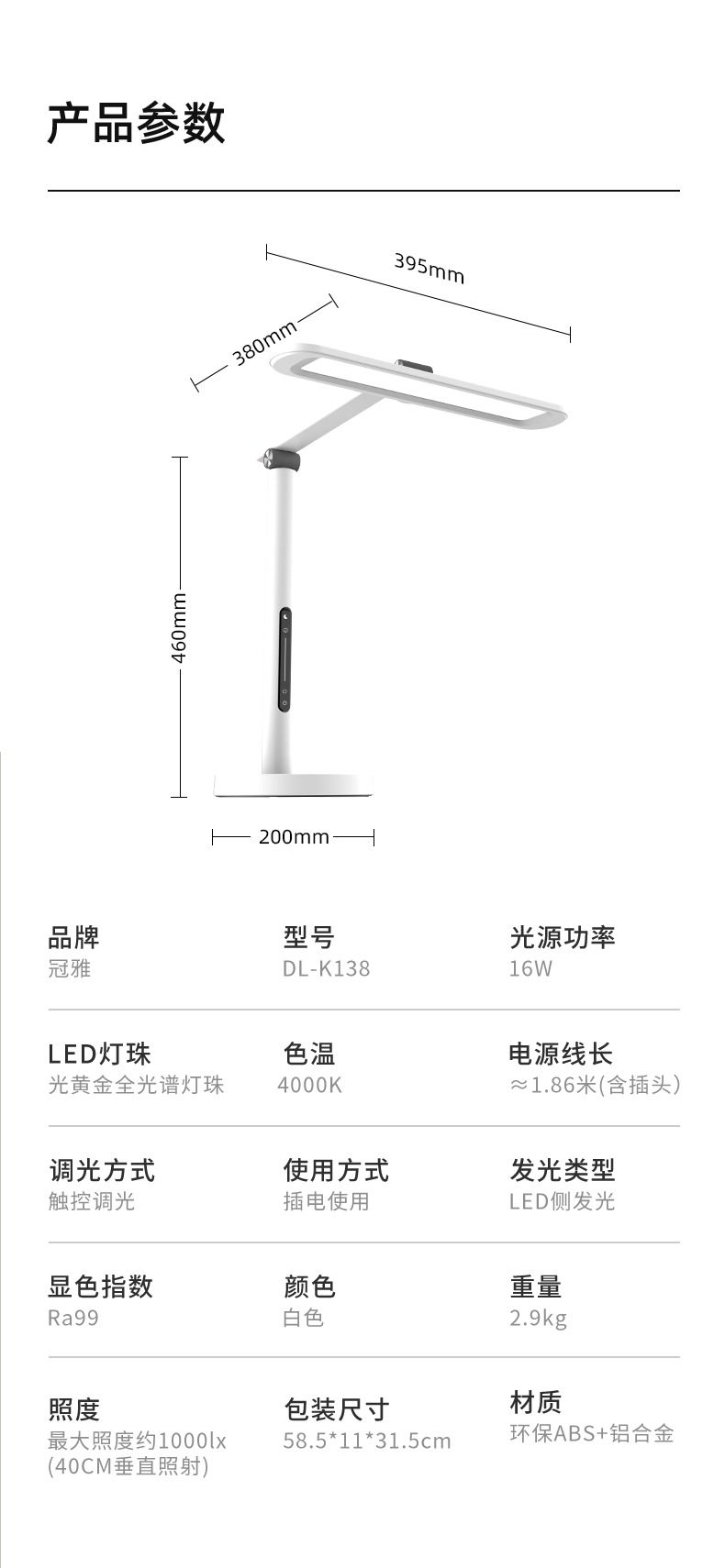 商品名称:(巨邦佑)BJ+冠雅全光谱光黄金护眼灯 DL-K138 湾区认证光黄金护眼台灯学习专用儿童学生书桌写字