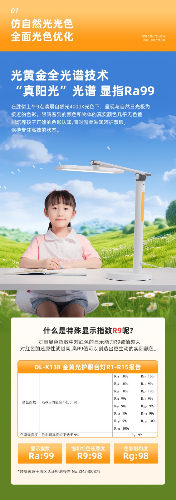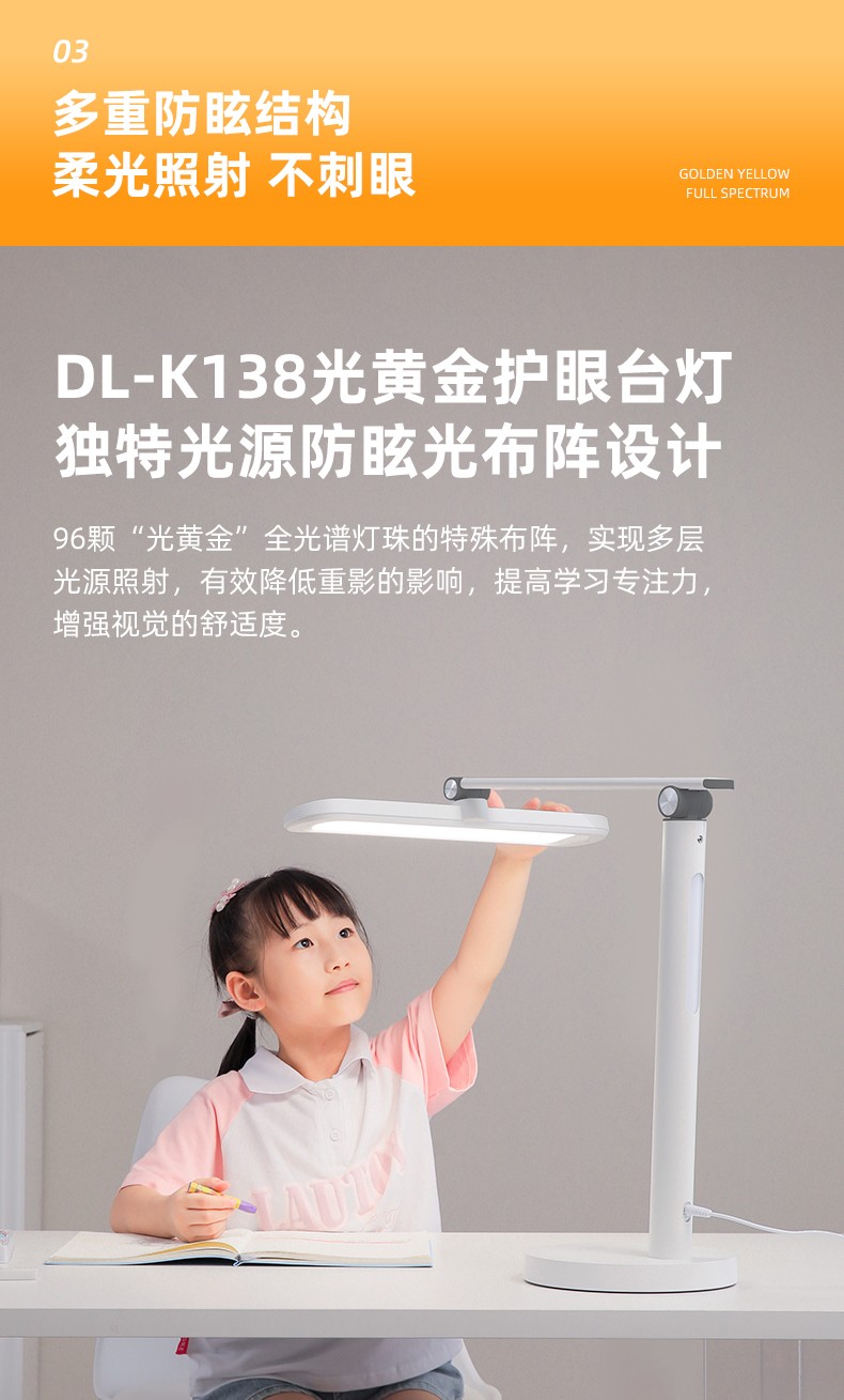 (巨邦佑)BJ+冠雅全光谱光黄金护眼灯 DL-K138 湾区认证光黄金护眼台灯学习专用儿童学生书桌写字