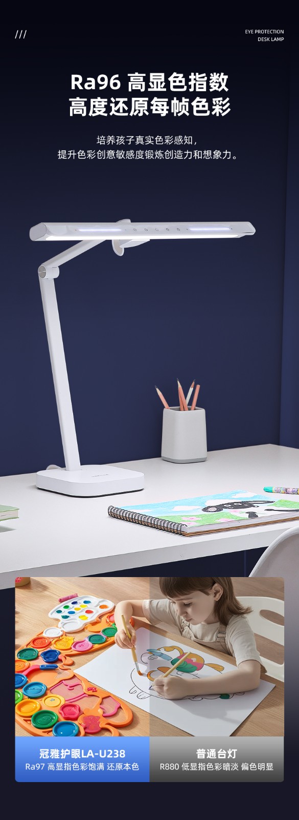 商品名称:(巨邦佑)BJ+冠雅 全光谱护眼灯 LA-U238 国AA级台灯学生学习阅读双滑条全光谱护眼台灯智能感应