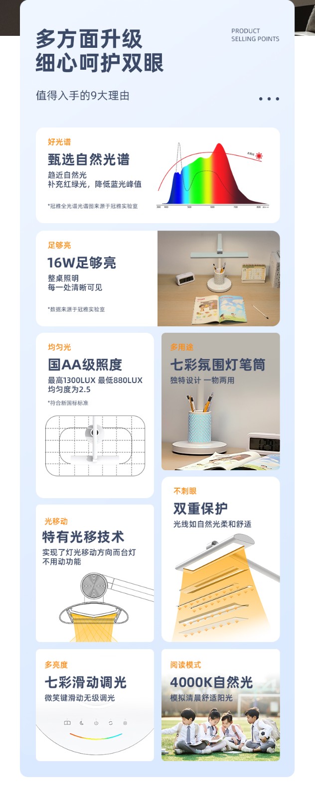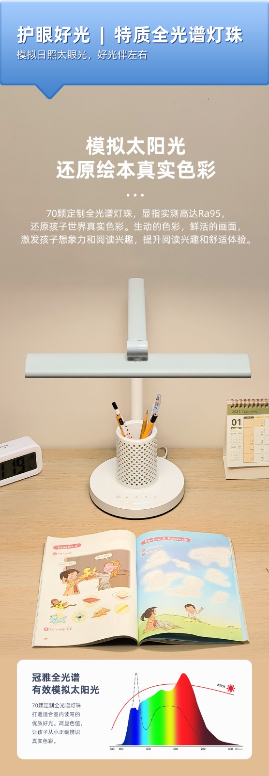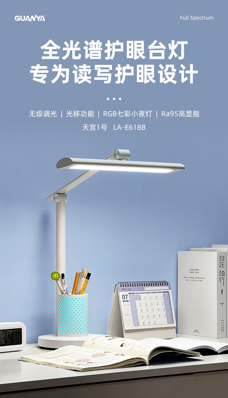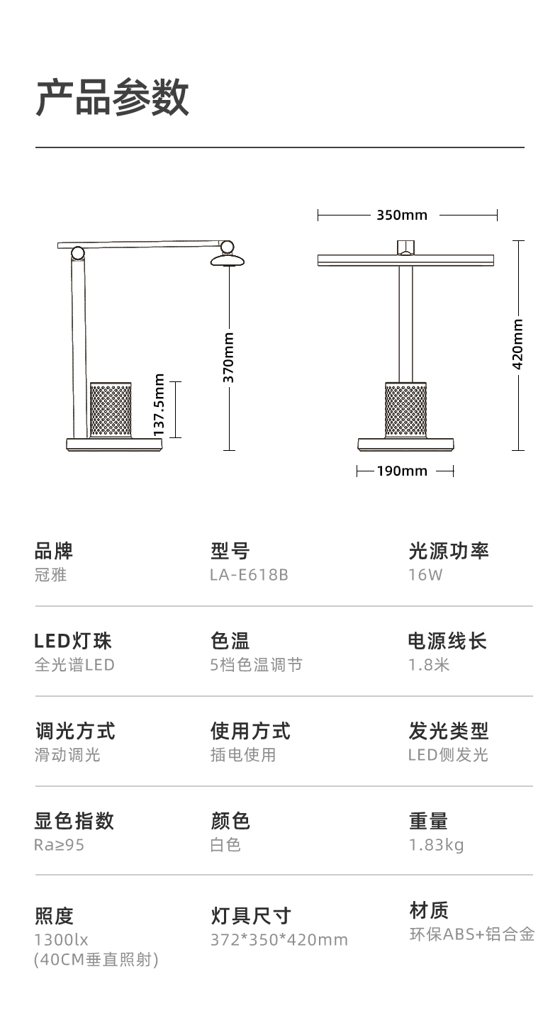 商品名称:(巨邦佑)BJ+冠雅护眼灯 LA-E618B 全光谱护眼台灯国AA级学生儿童书房学习阅读专用带笔筒台灯