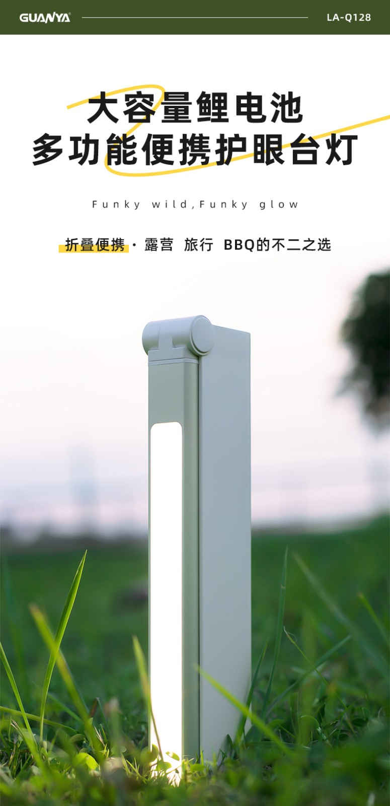 (巨邦佑)BJ+冠雅 多功能充电台灯 LA-Q128(充电款) 学习台灯迷你折叠便携式多功能台灯宿舍寝室学生读书阅读灯 应急灯