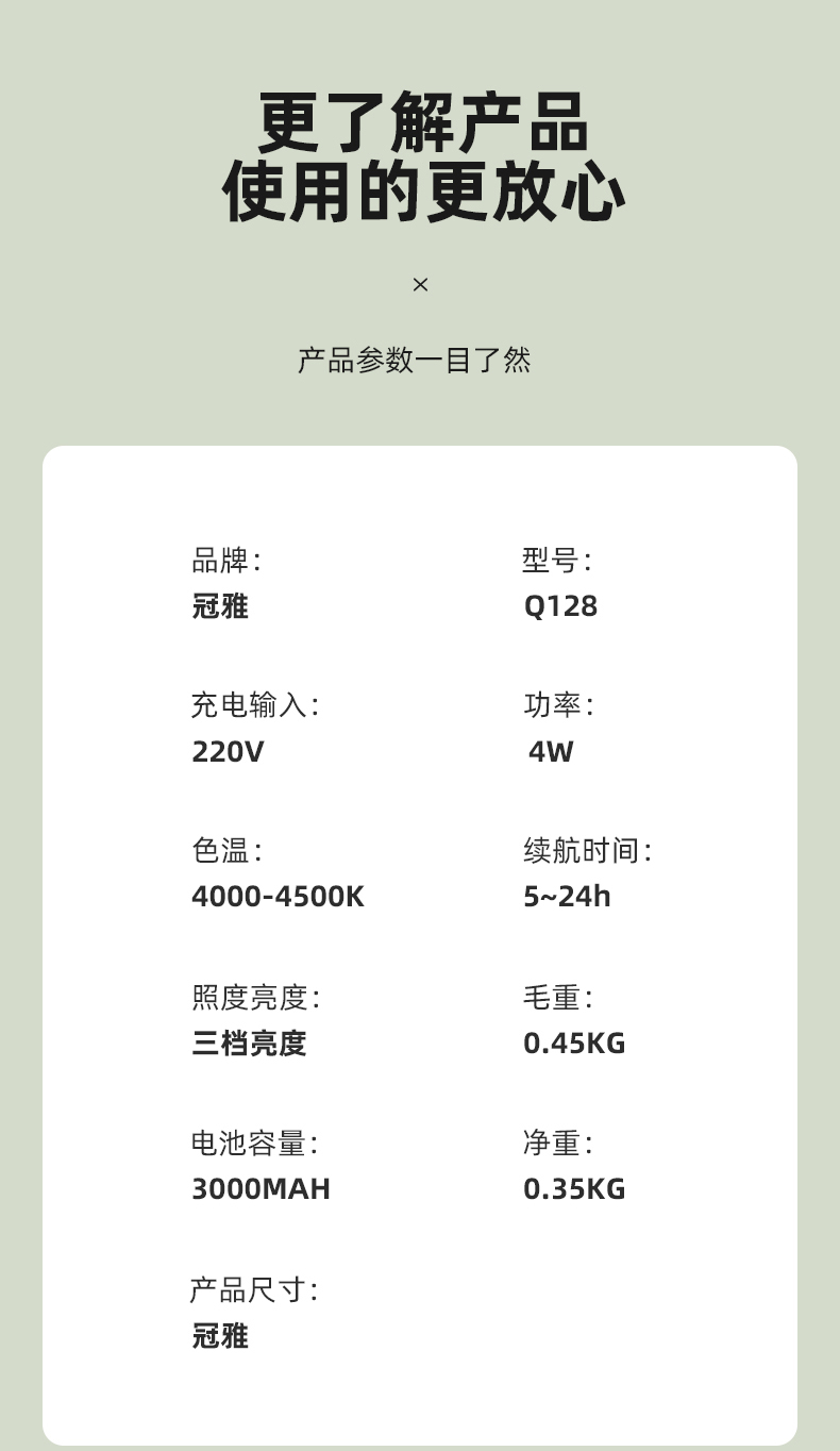 商品名称:(巨邦佑)BJ+冠雅 多功能充电台灯 LA-Q128(充电款) 学习台灯迷你折叠便携式多功能台灯宿舍寝室学生读书阅读灯 应急灯