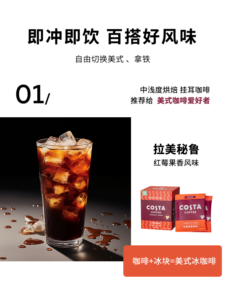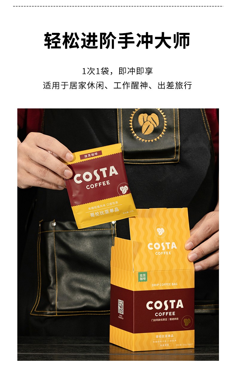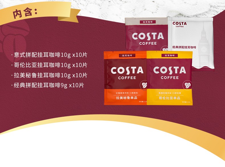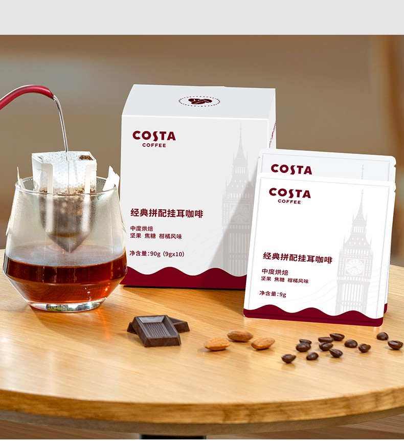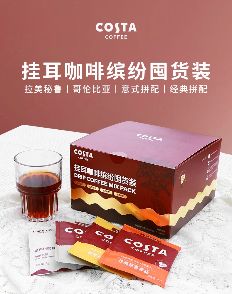 商品名称:(超运·禾贸)costa 缤纷挂耳囤货装390G 手冲滴滤咖啡美式黑咖啡精品咖啡粉现磨 囤货装40片*1盒装