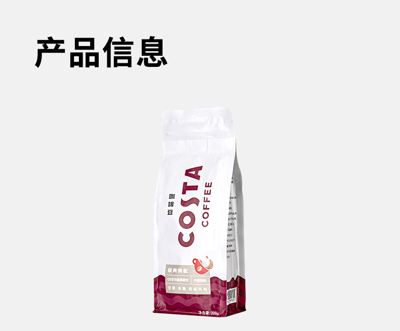 商品名称:(超运·禾贸)costa 咖啡豆经典拼配200g 经典拼配-中烘-醇苦平衡