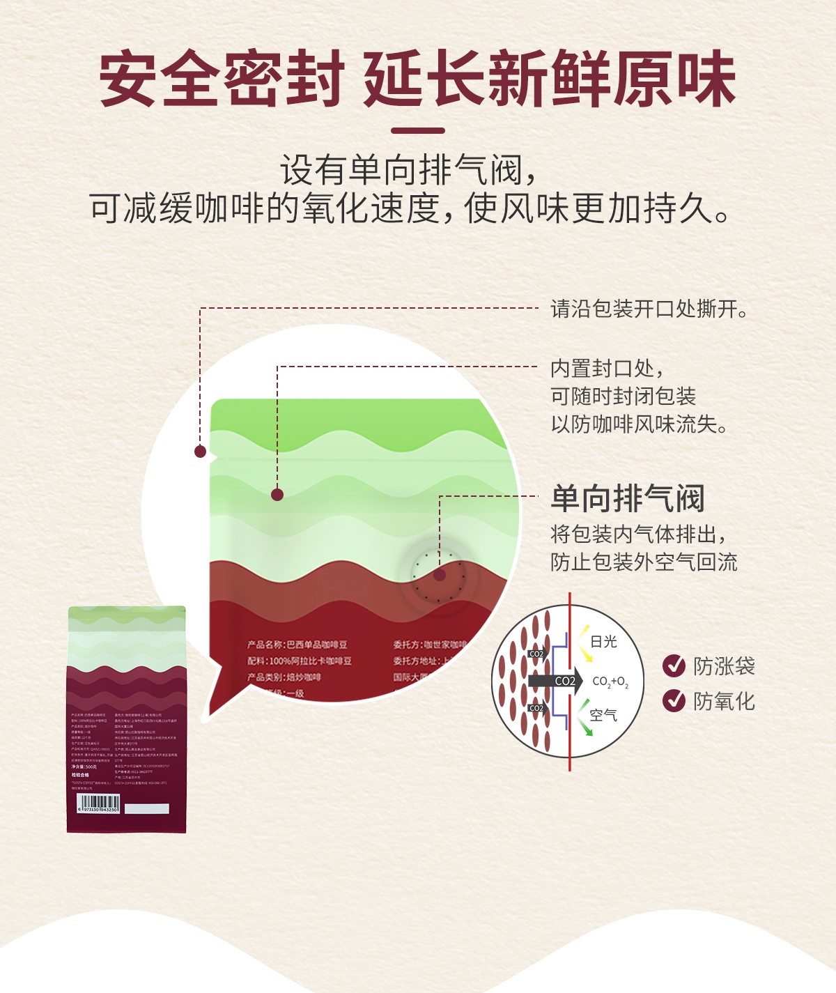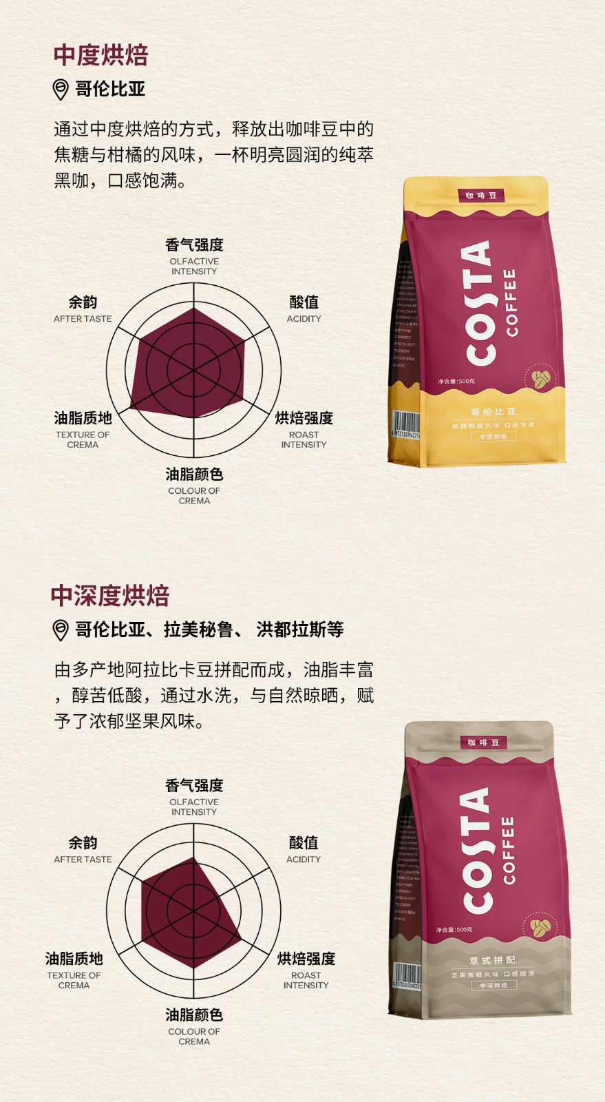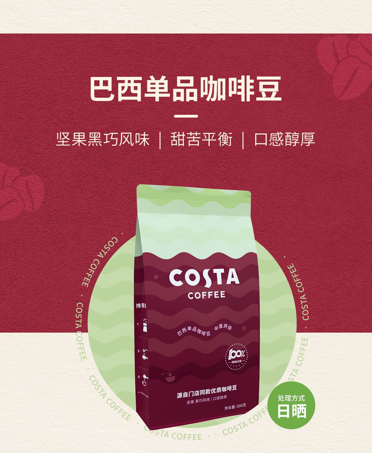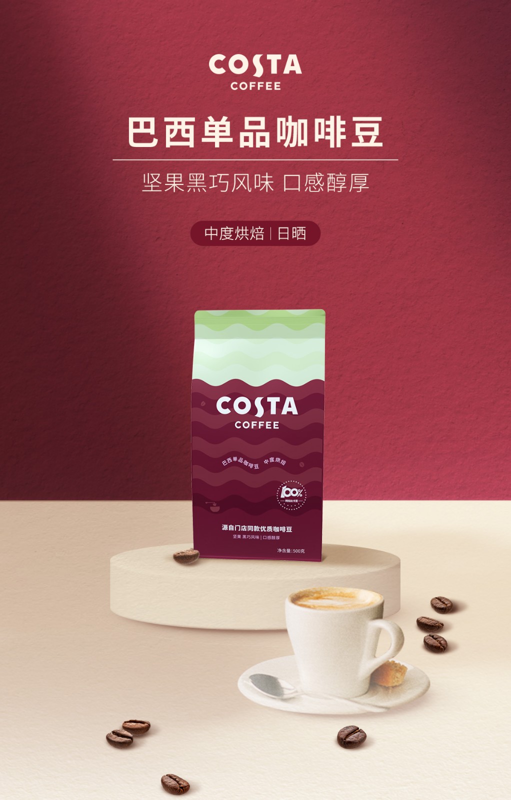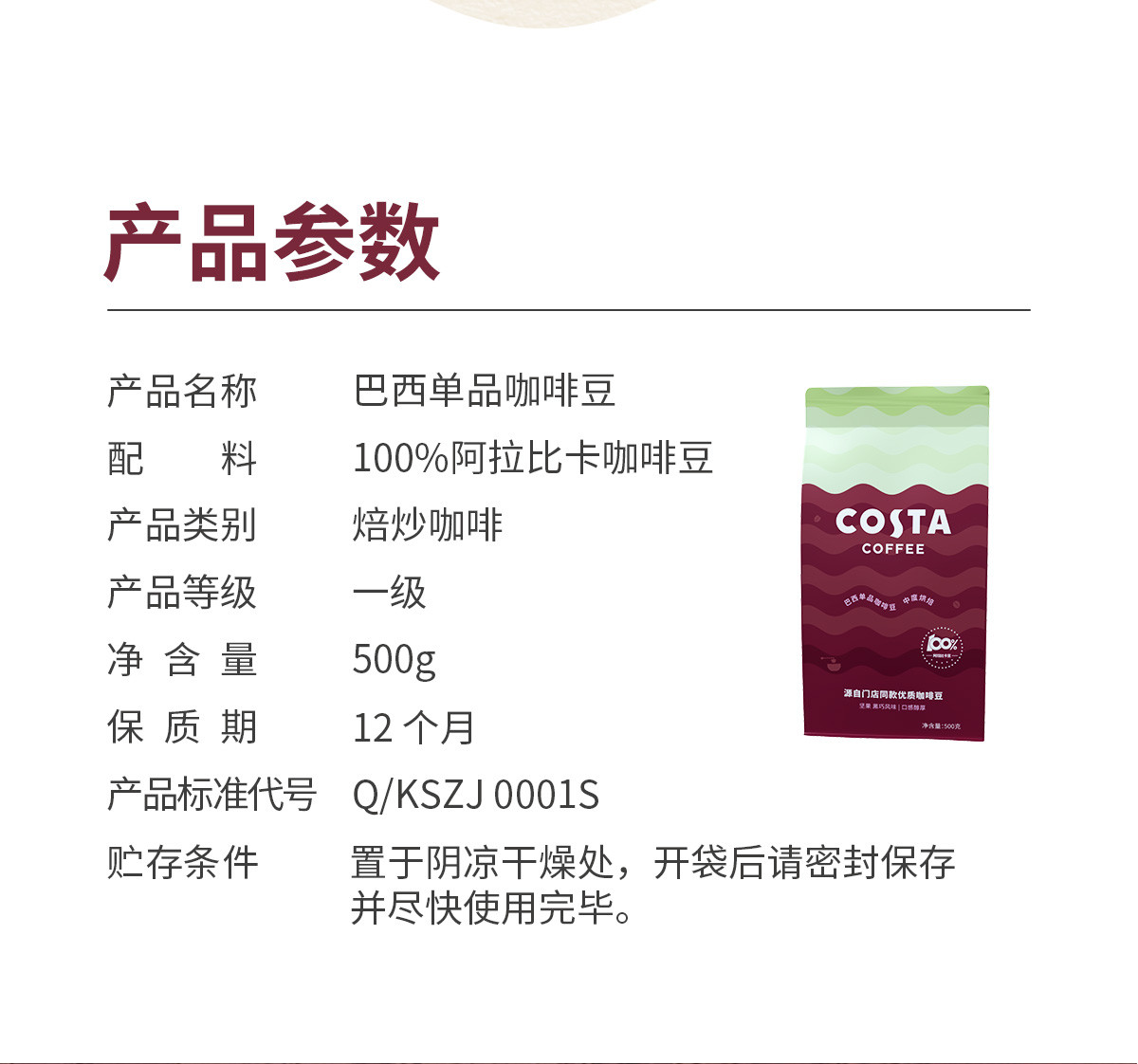 商品名称:(超运·禾贸)costa 巴西豆500g 100%阿拉比卡中烘焙豆精品巴西单品豆