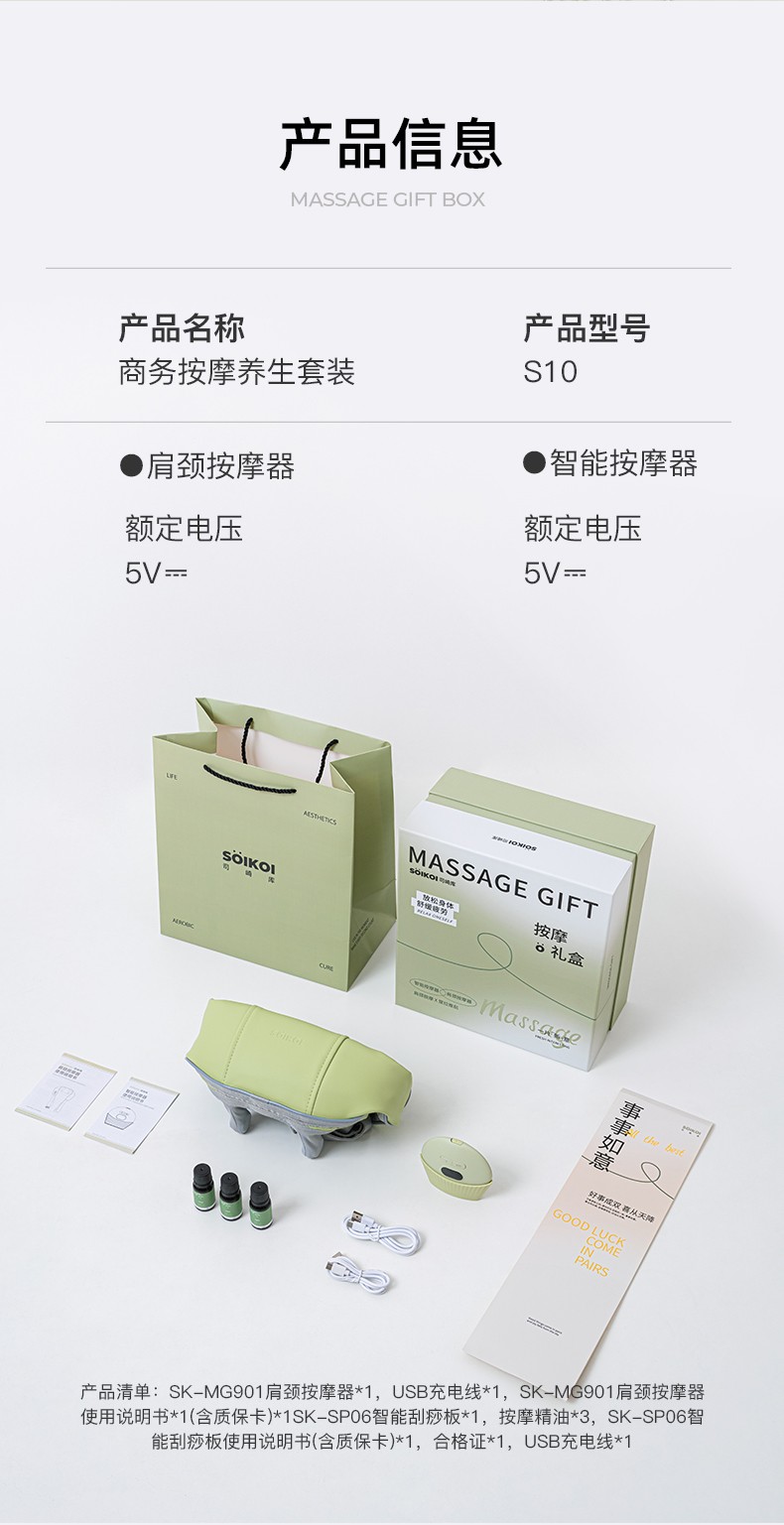 (巨邦佑)BJ+SOIKOI司崎库 商务按摩养生套装 S10 便携式砭石智能按摩器