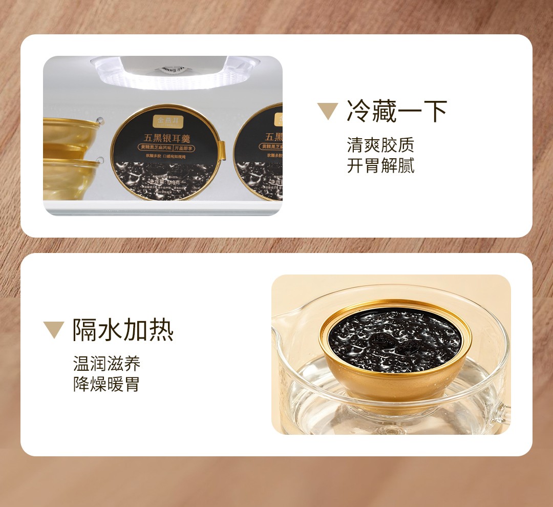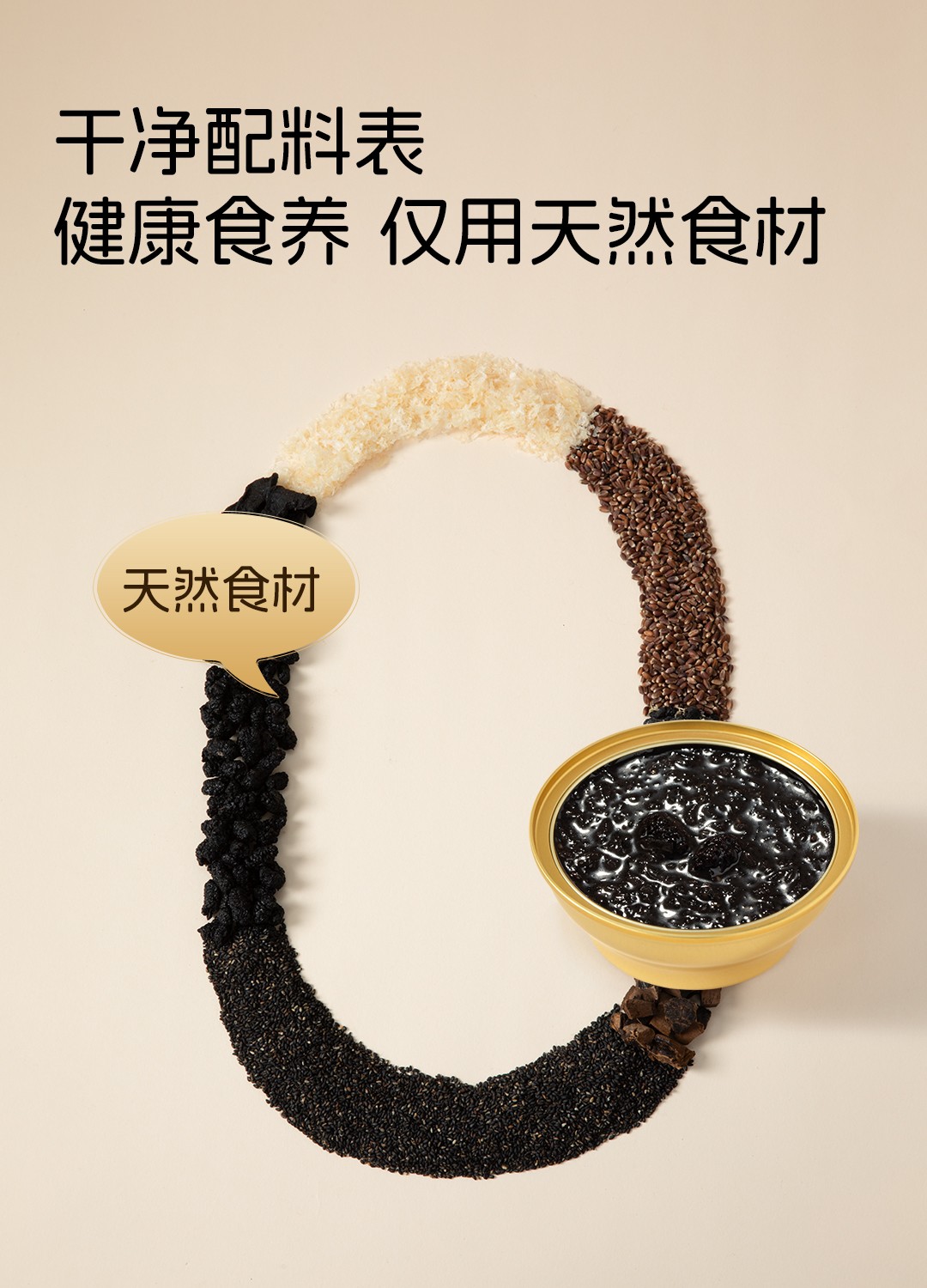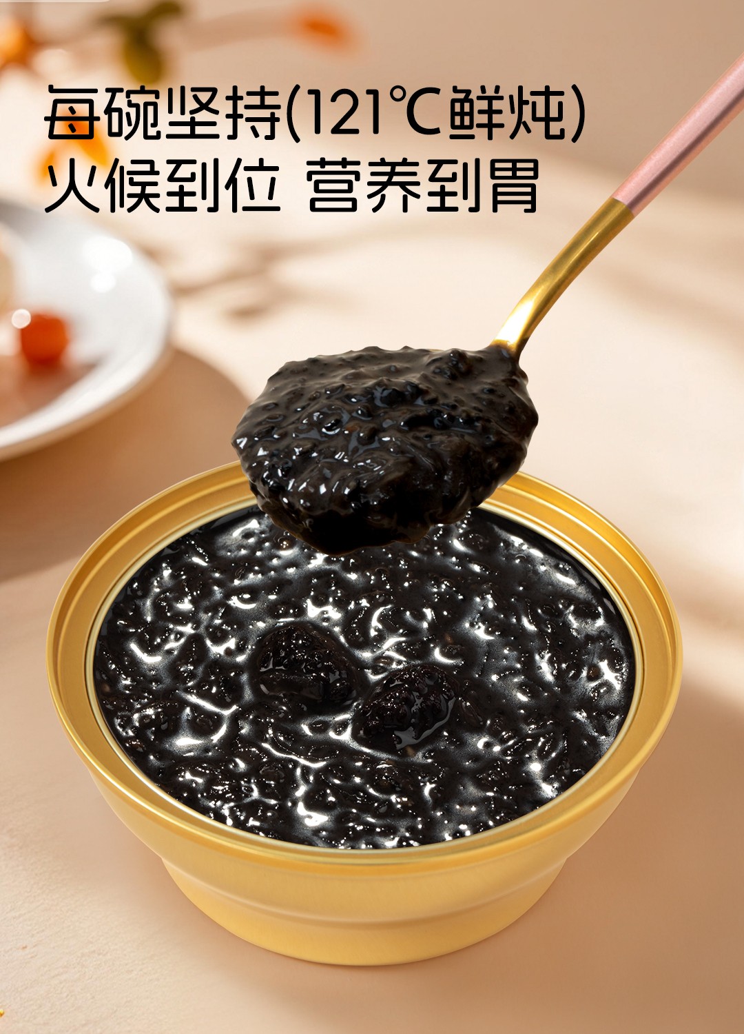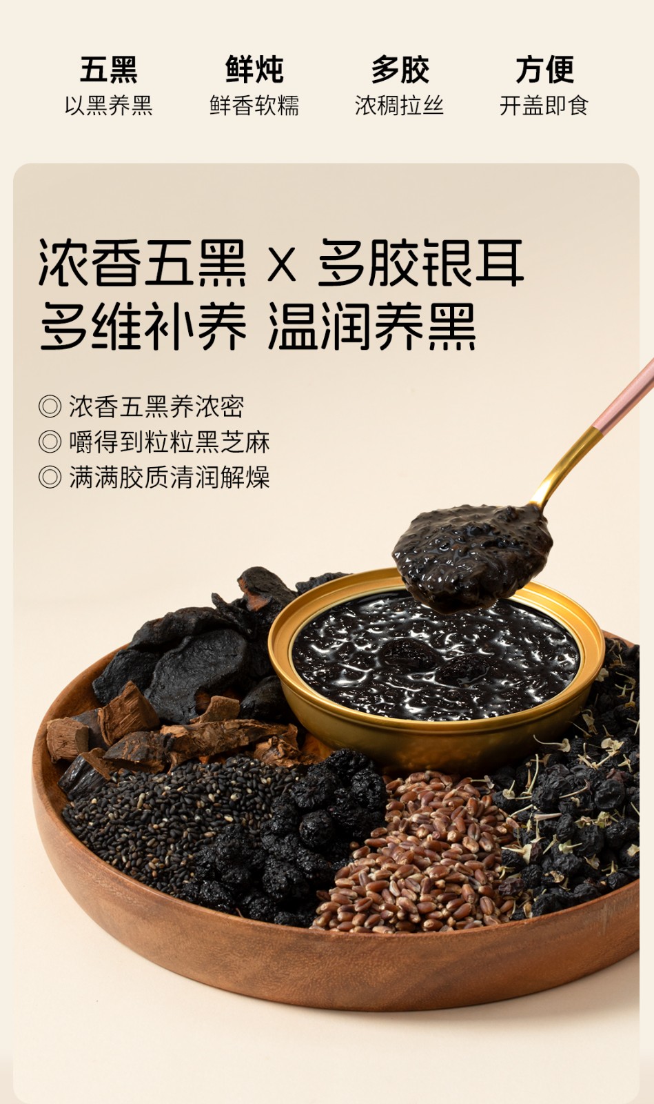 商品名称:(汇景缘)金燕耳K五黑银耳羹(黄精黑芝麻风味)168g*6碗盒 生态银耳鲜炖银耳羹礼盒即食早餐