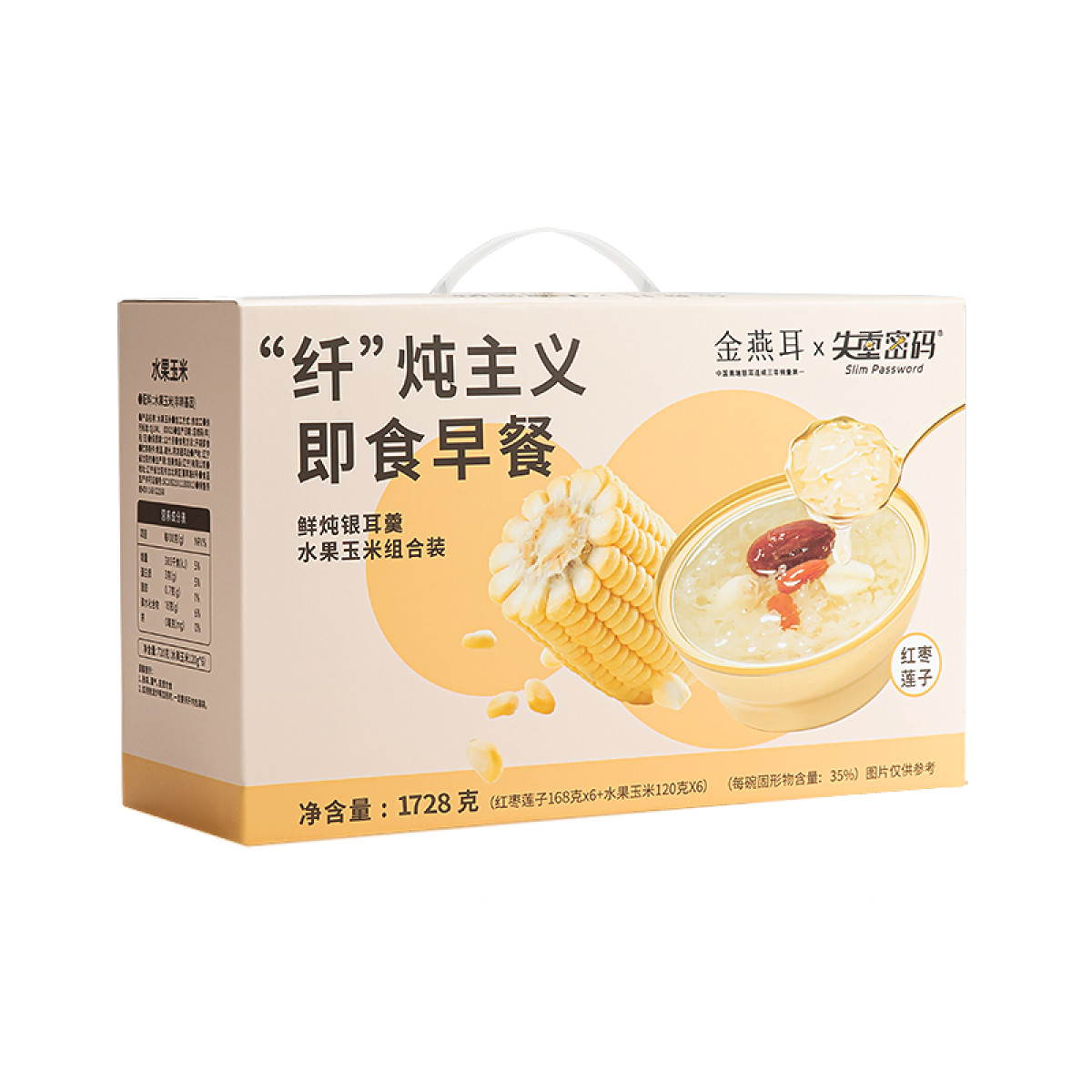 商品名称:(汇景缘)金燕耳K纤炖主义即食早餐(红枣莲子)168g银耳羹*6,120g水果玉米段*6 银耳羹玉米组合 失重密码联名款 营养早餐