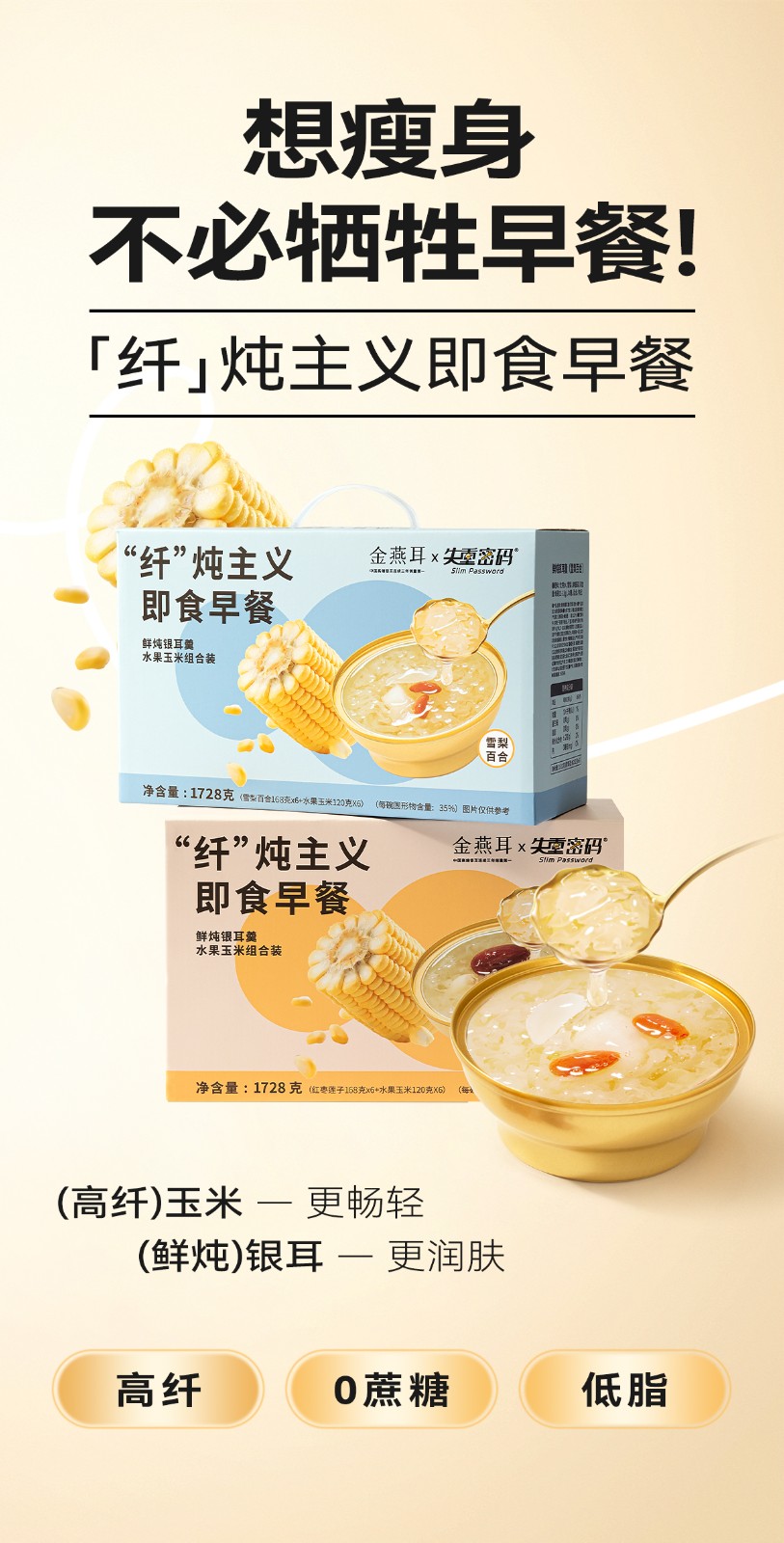 (汇景缘)金燕耳K纤炖主义即食早餐(红枣莲子)168g银耳羹*6,120g水果玉米段*6 银耳羹玉米组合 失重密码联名款 营养早餐