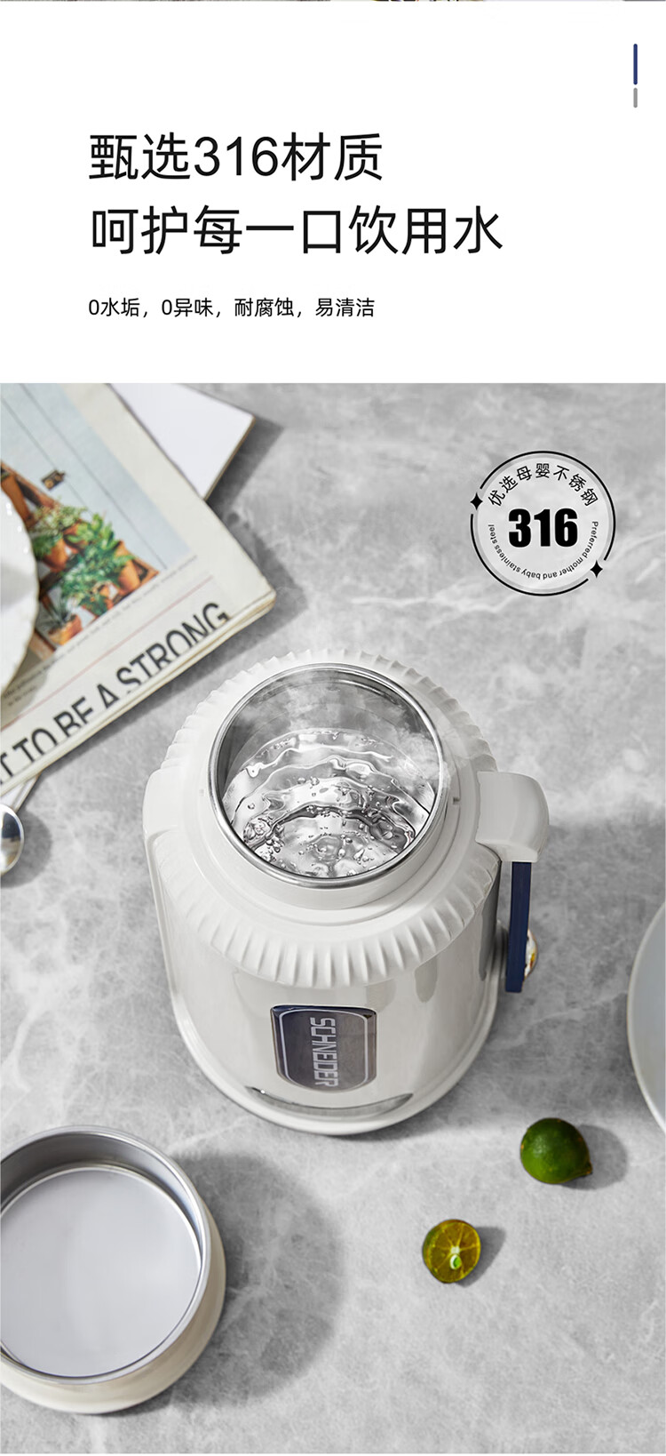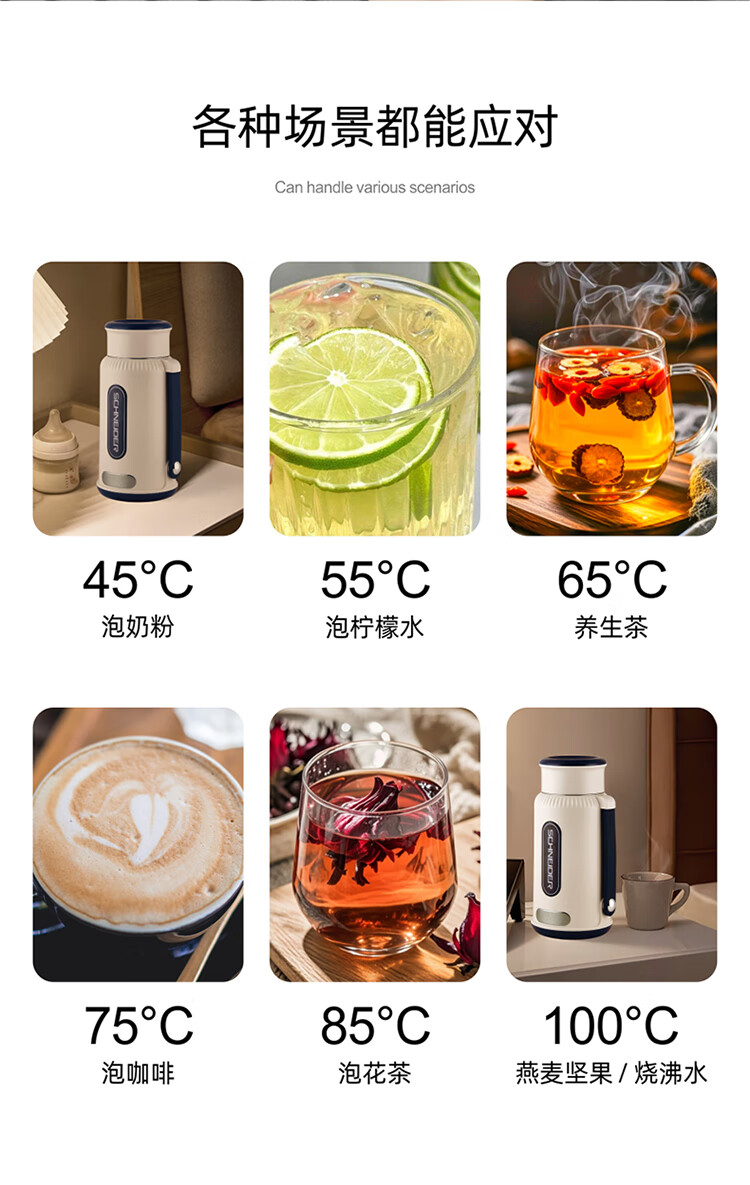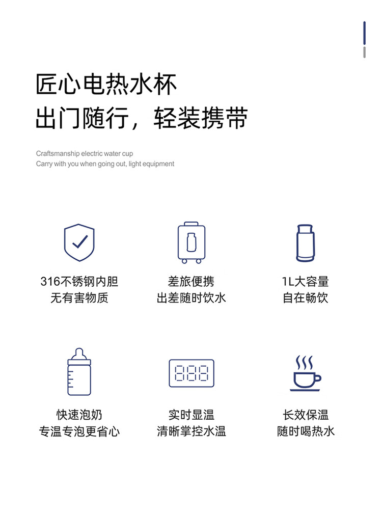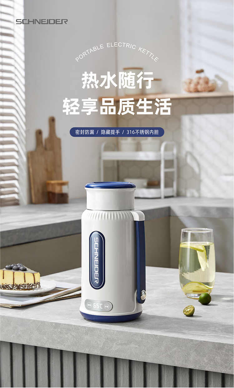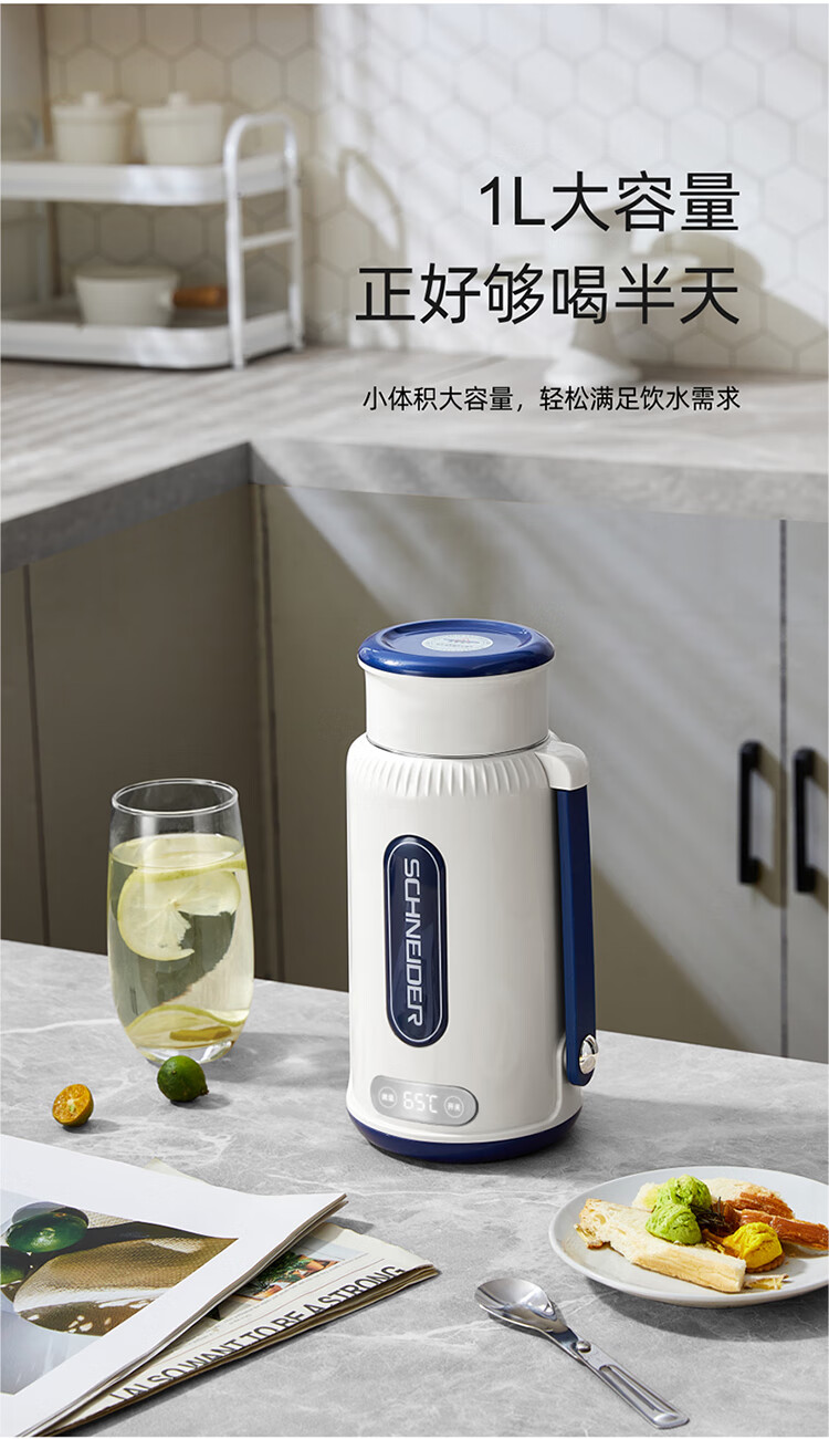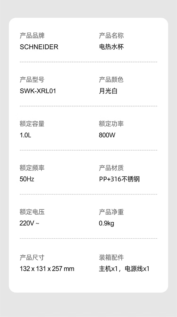 商品名称:(世星阳光)施耐德便携式电热水杯 SWK-XRL01 1L 316不锈钢 长效保温 800功率