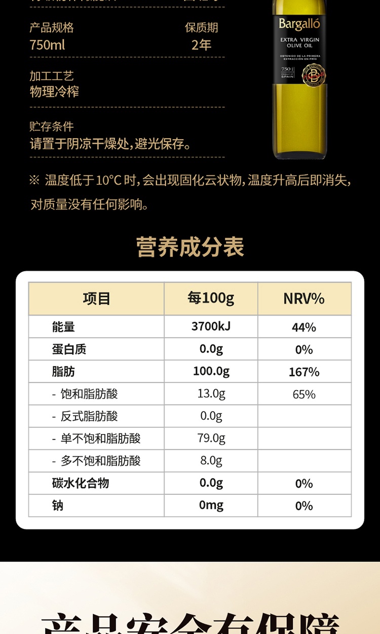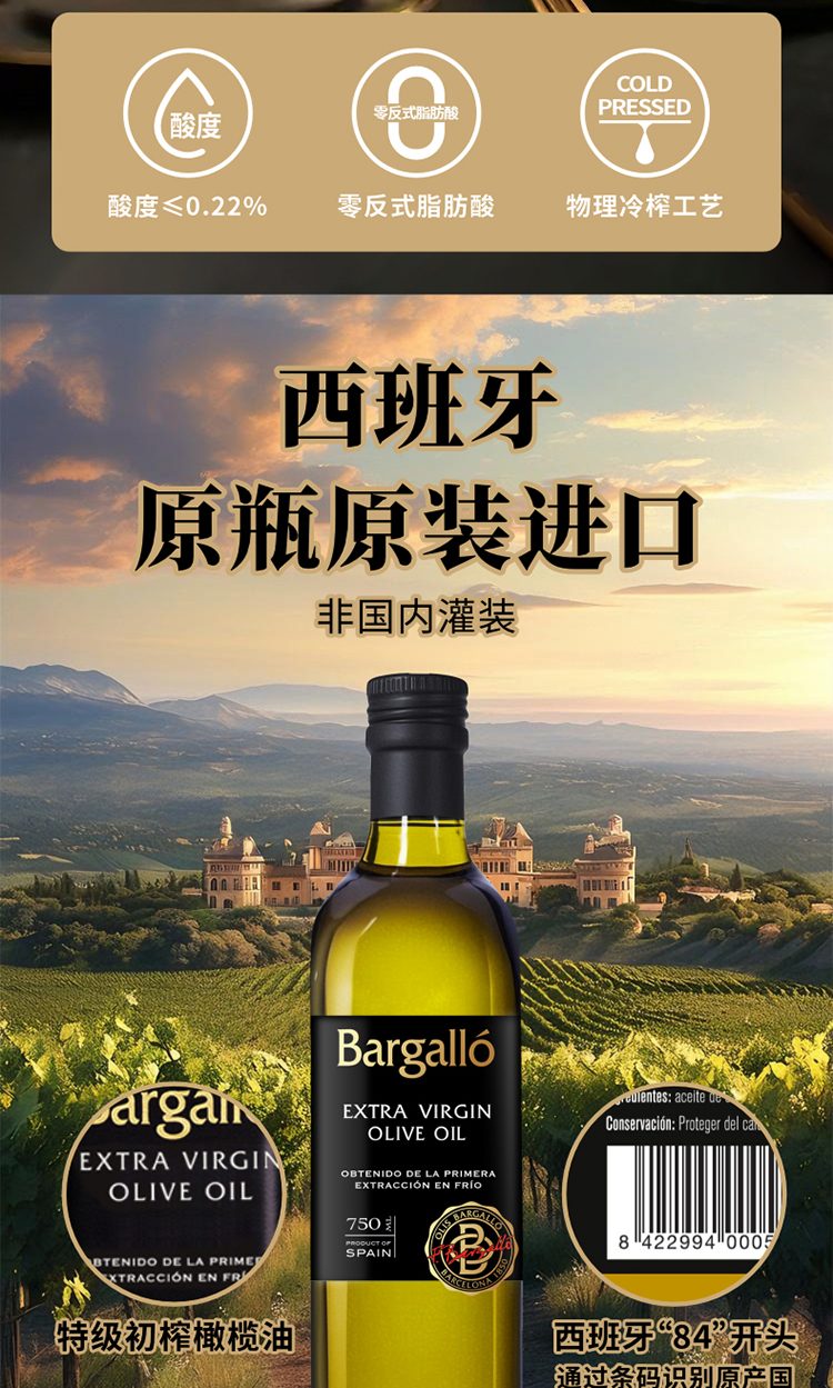 商品名称:(巨邦佑)T+ (yp)Olis Bargalló【保真橄榄油】百谷纳特级初榨橄榄油750ml 西班牙原装原瓶进口