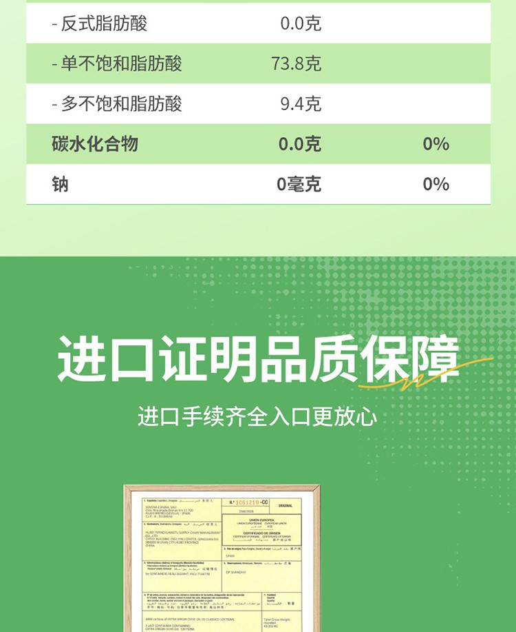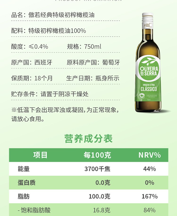 商品名称:(巨邦佑)T+ (yp)傲若【保真橄榄油】特级初榨橄榄油750ml瓶装 西班牙原装原瓶进口