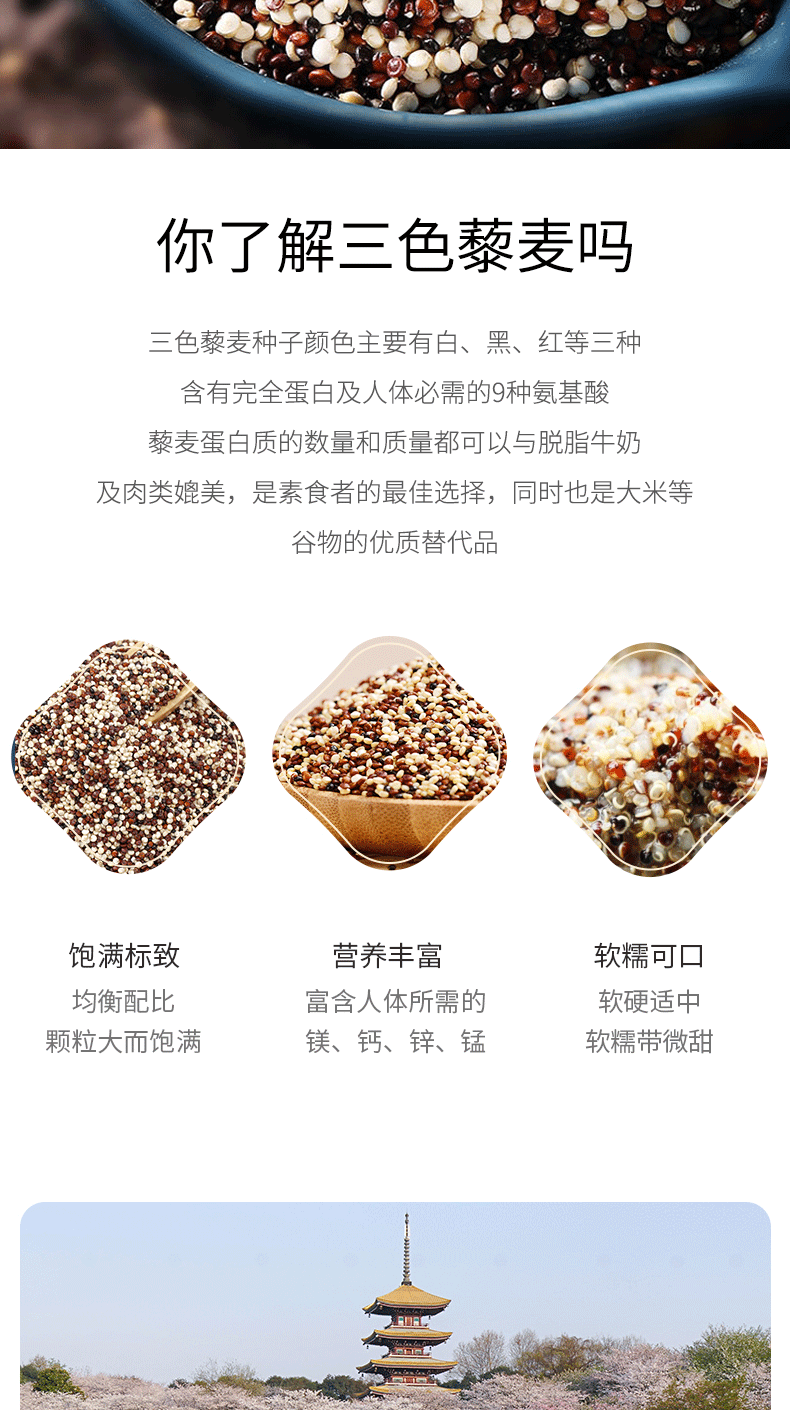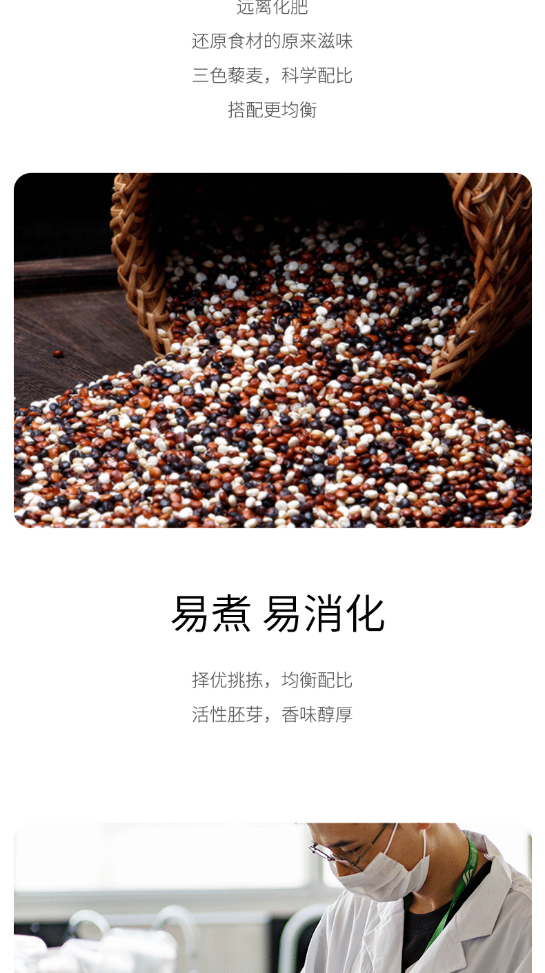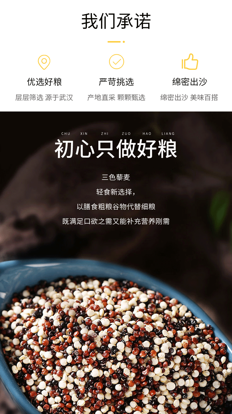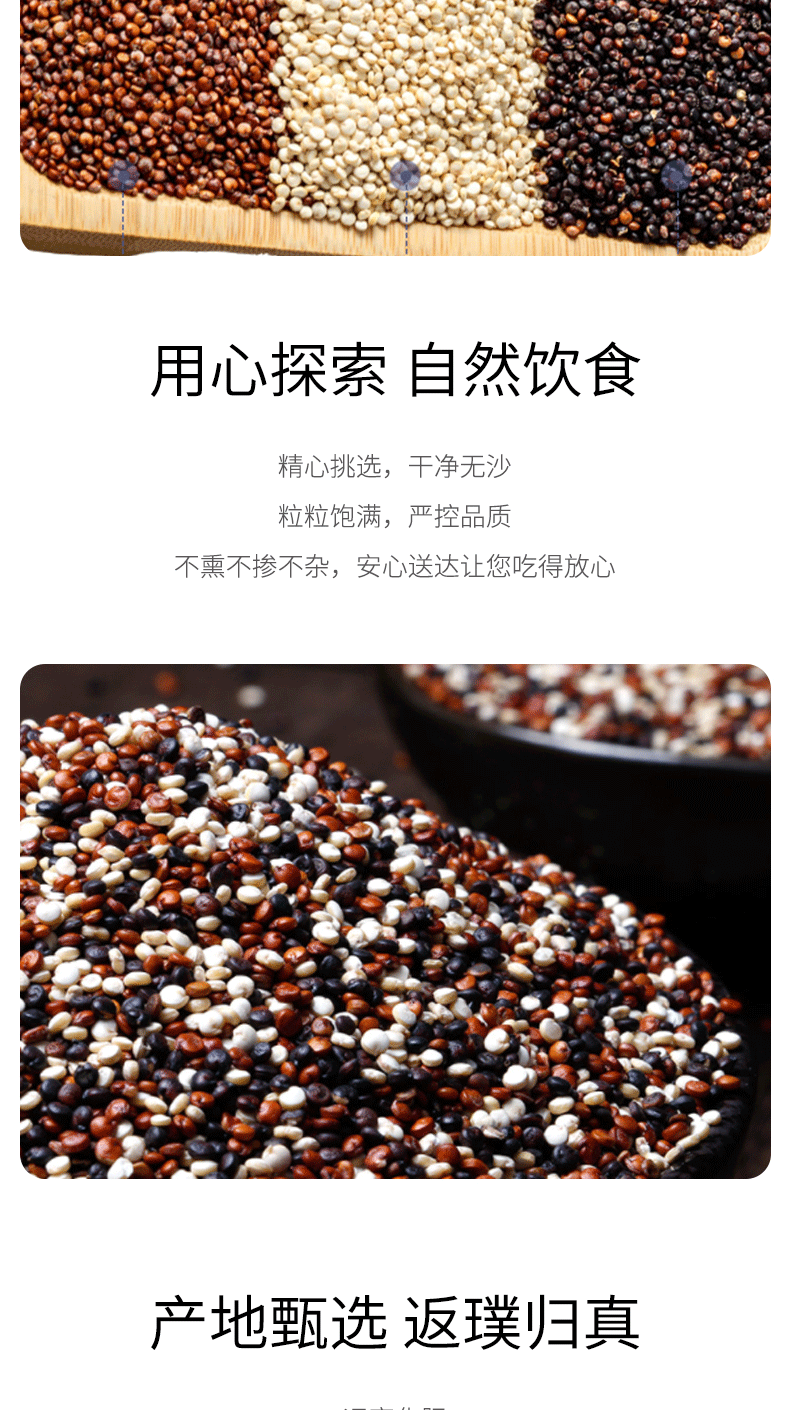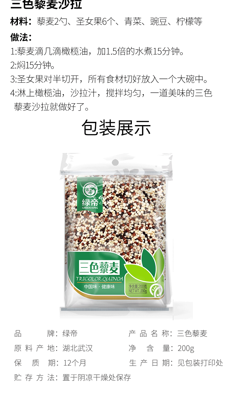 商品名称:(世星阳光)+绿帝三色藜麦200g*2袋 严格挑选 绵密出沙