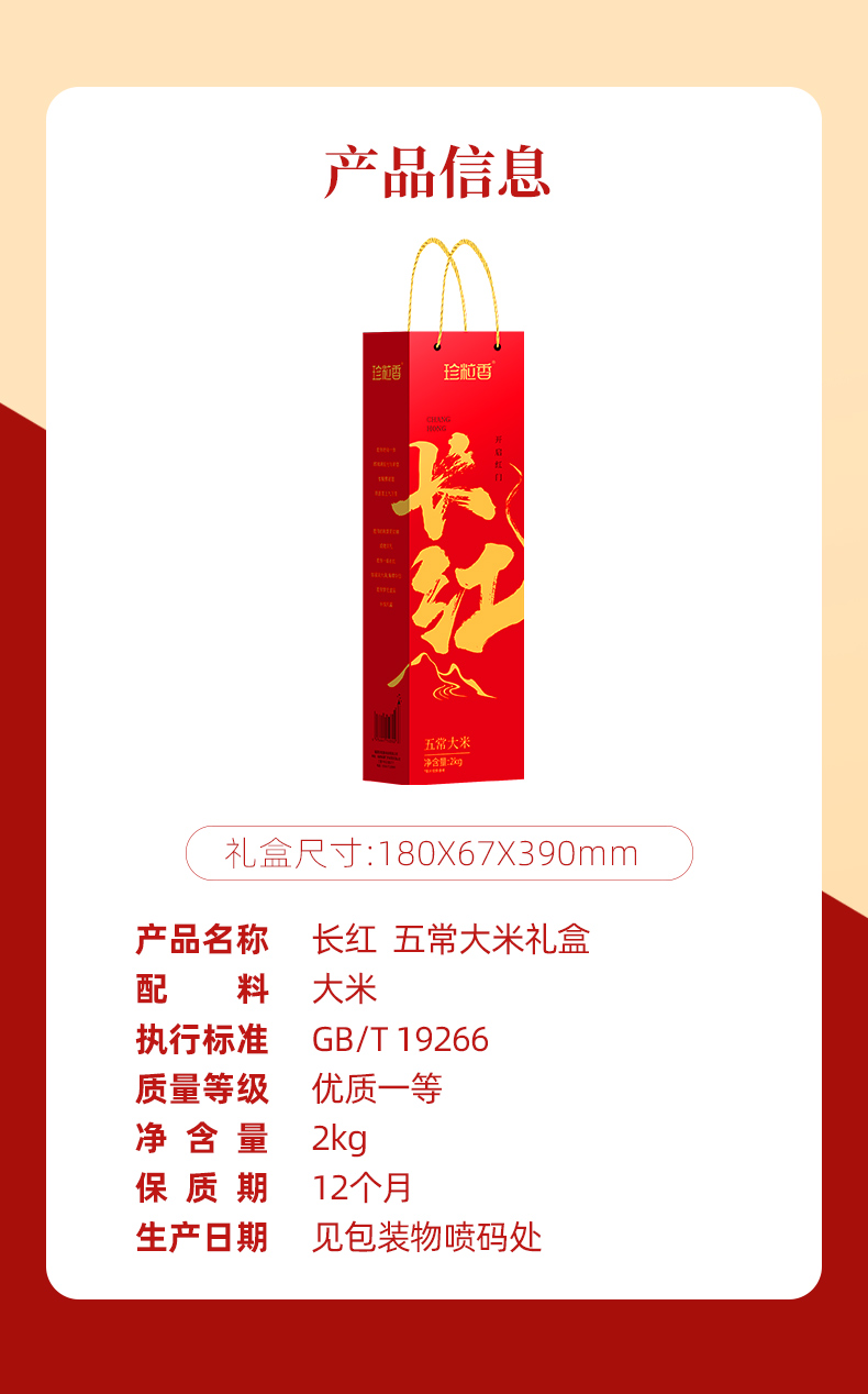 商品名称:(世星阳光)+珍粒香 长红五常大米礼盒2kg 软糯香甜 优质鲜稻现磨 优质产区