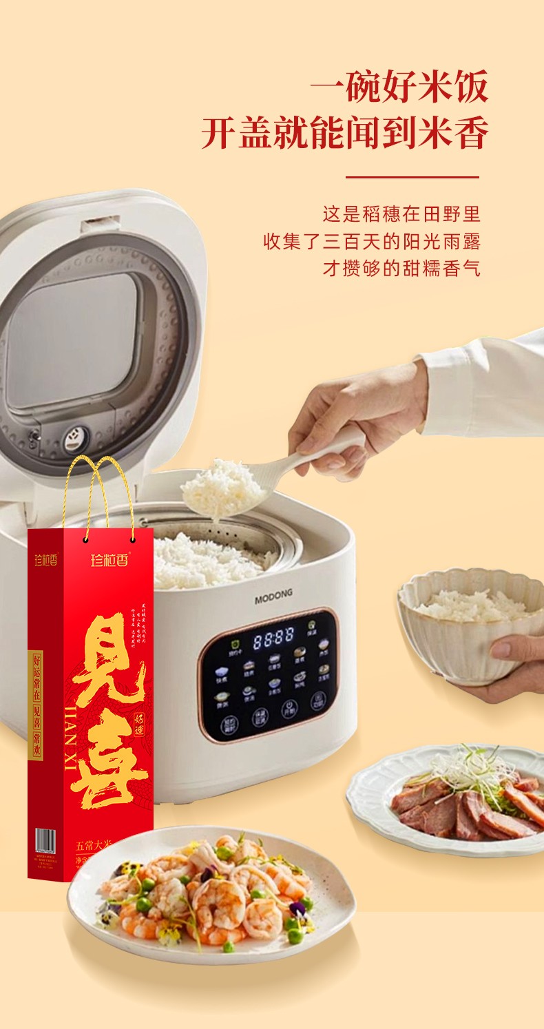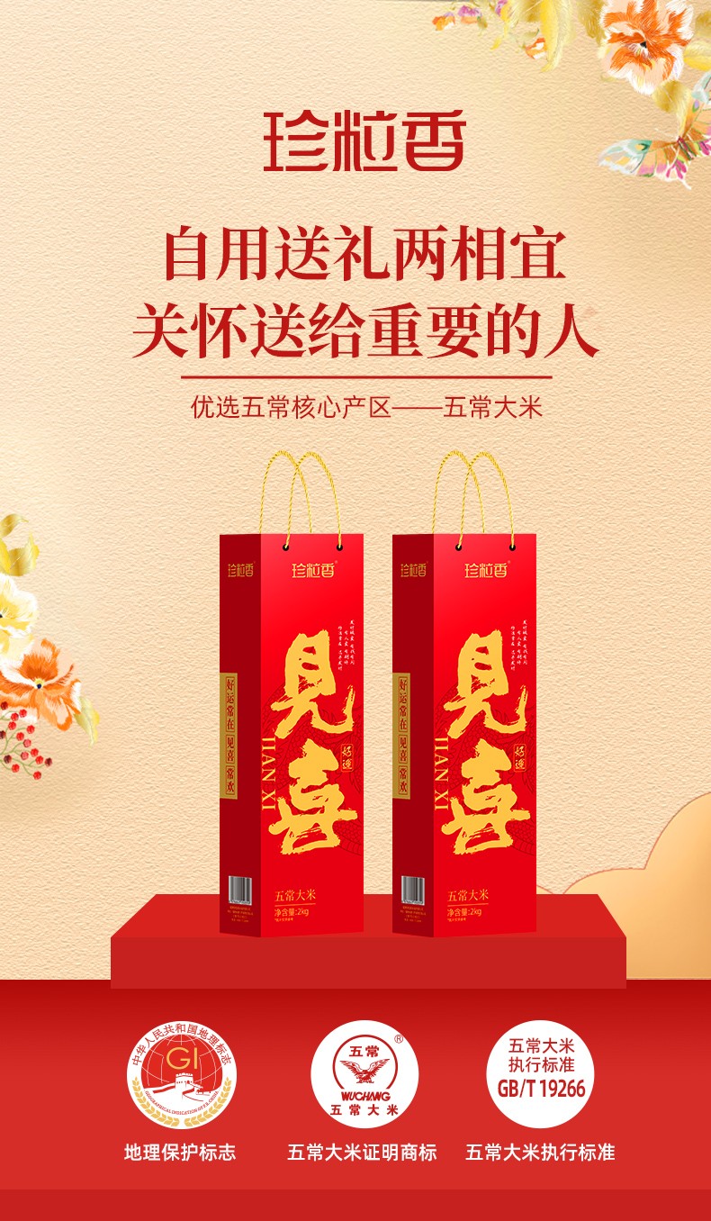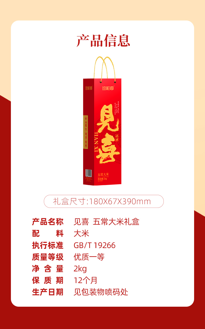 商品名称:(世星阳光)+珍粒香见喜五常大米礼盒2kg 软糯香甜 优质产区