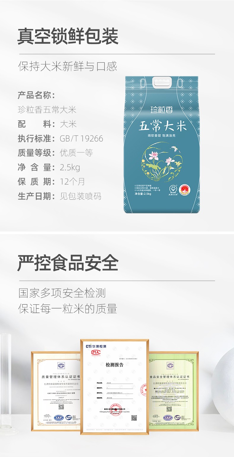 商品名称:(世星阳光)+珍粒香 五常大米2.5kg 真空锁鲜包装 优质稻谷低氧保鲜 只为保留天然米香和营养