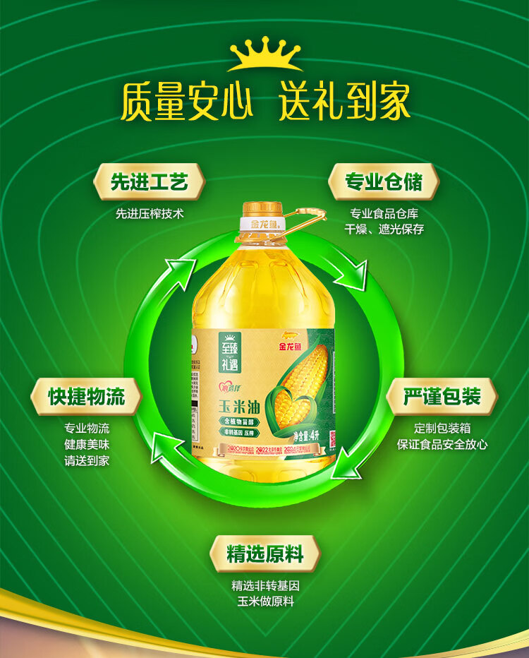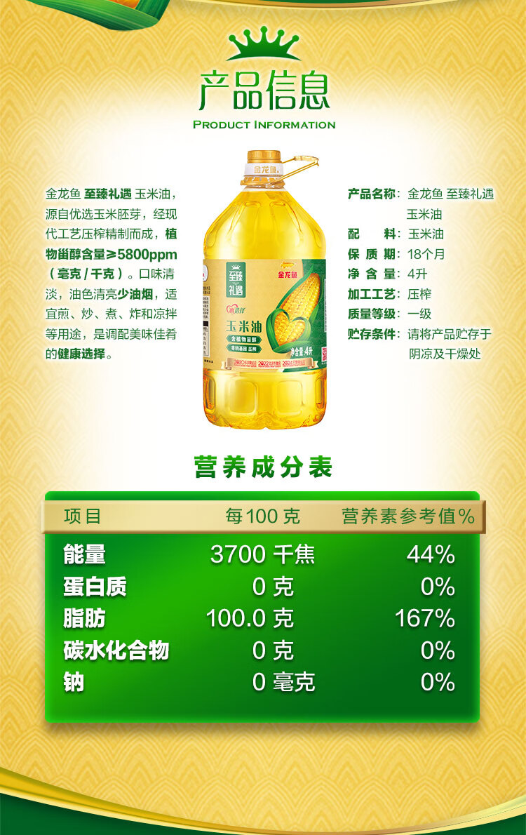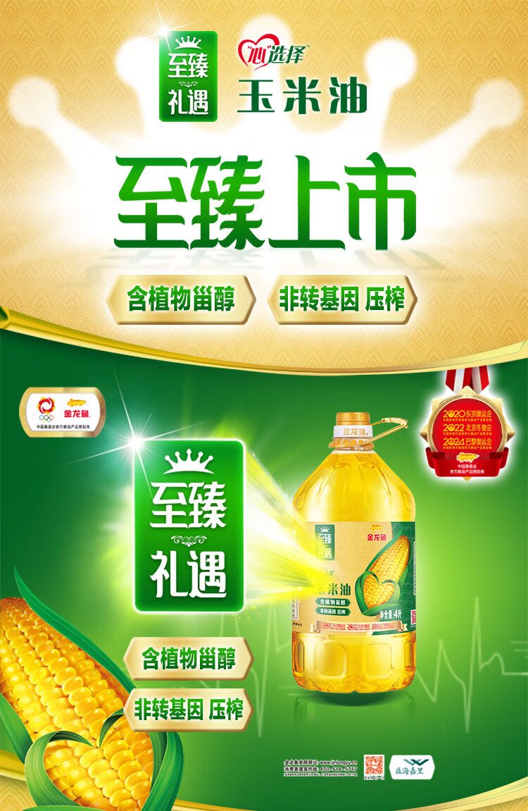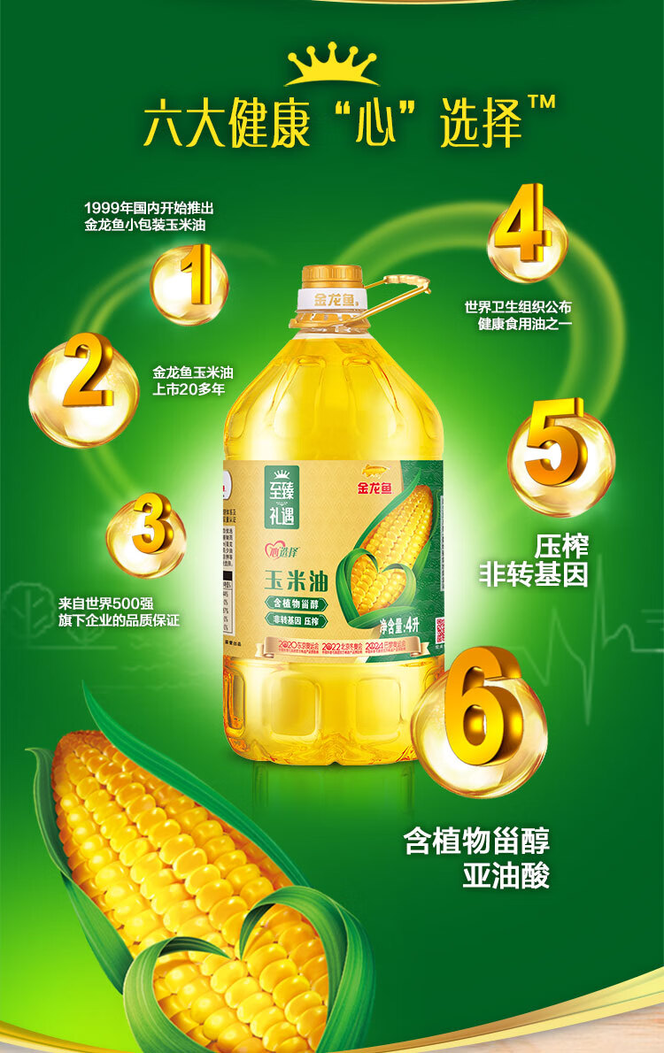 商品名称:(巨邦佑)T+ (yp)金龙鱼至臻礼遇玉米油4L 桶装家用物理压榨炒菜食用油