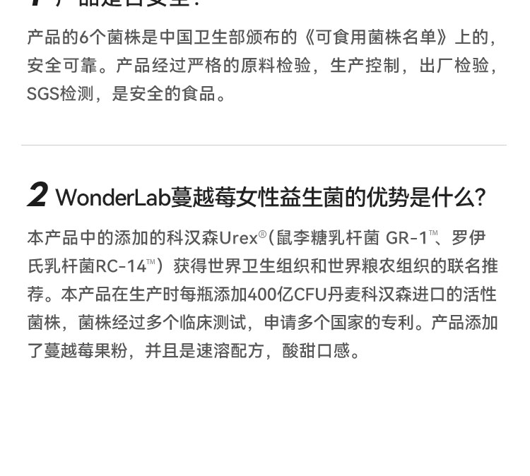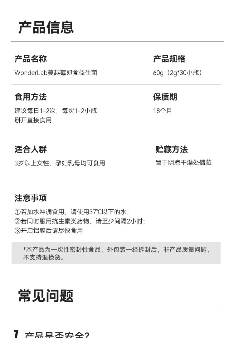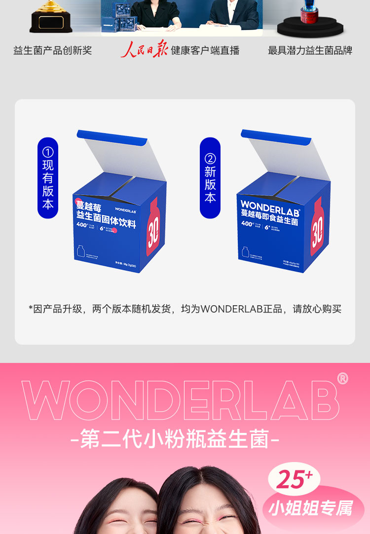 商品名称:(超运·禾贸)WonderLab蔓越莓即食益生菌 (30瓶装) 女性益生菌即食小粉瓶私处成人
